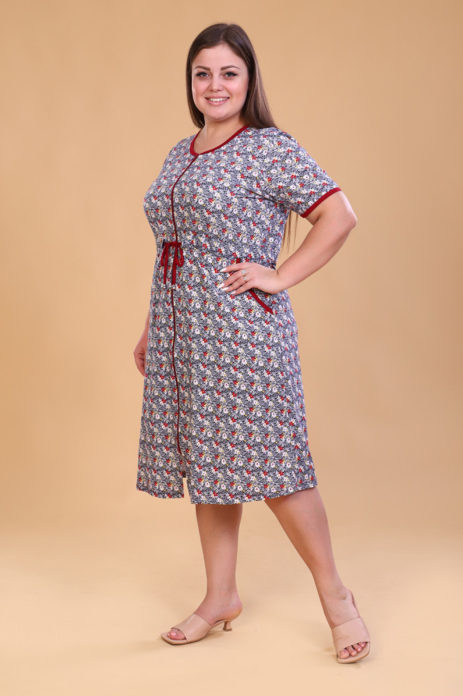 Женский халат создан для тех, кто ценит комфорт и стиль в каждом моменте. Мягкая приятная к телу ткань обеспечивает уют и легкость движений, позволяя наслаждаться домашними делами или отдыхом. Удобный крой подчёркивает естественную линию фигуры, а аккуратные детали придают изделию элегантный вид. Такой халат станет идеальным выбором для повседневного использования, утренних ритуалов или вечернего расслабления, создавая ощущение комфорта и гармонии каждый день.