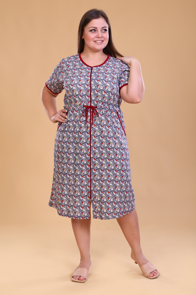 Женский халат создан для тех, кто ценит комфорт и стиль в каждом моменте. Мягкая приятная к телу ткань обеспечивает уют и легкость движений, позволяя наслаждаться домашними делами или отдыхом. Удобный крой подчёркивает естественную линию фигуры, а аккуратные детали придают изделию элегантный вид. Такой халат станет идеальным выбором для повседневного использования, утренних ритуалов или вечернего расслабления, создавая ощущение комфорта и гармонии каждый день.