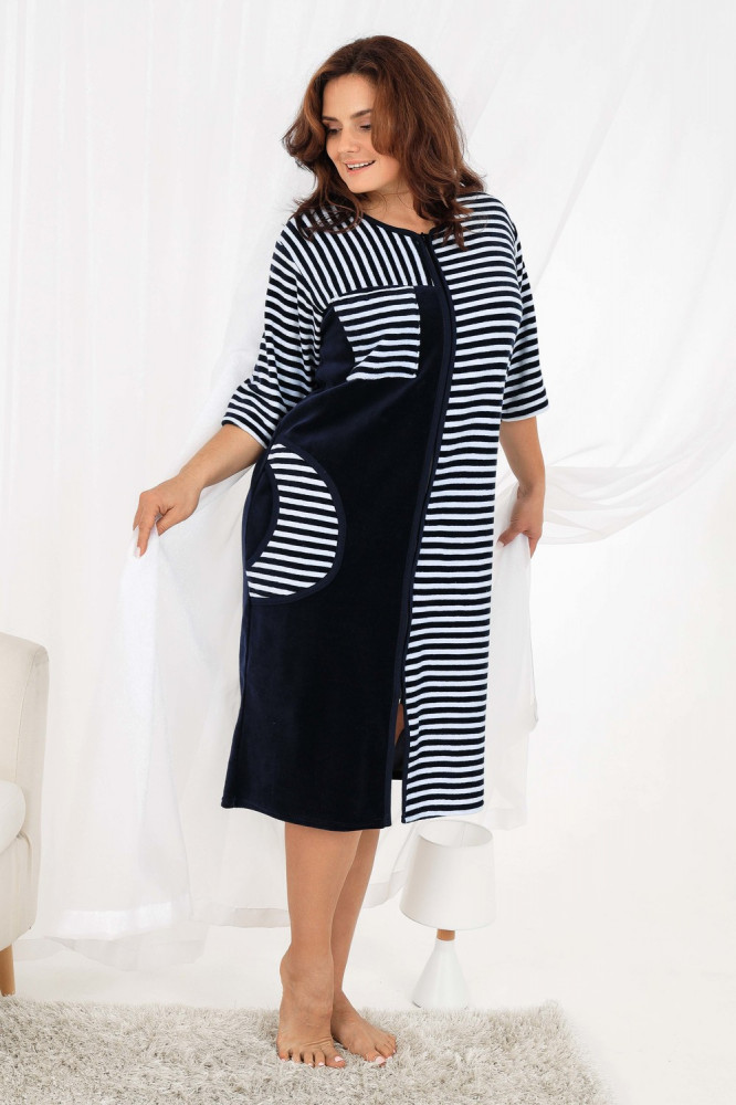 Женский халат создан для тех, кто ценит комфорт и стиль в каждом моменте. Мягкая приятная к телу ткань обеспечивает уют и легкость движений, позволяя наслаждаться домашними делами или отдыхом. Удобный крой подчёркивает естественную линию фигуры, а аккуратные детали придают изделию элегантный вид. Такой халат станет идеальным выбором для повседневного использования, утренних ритуалов или вечернего расслабления, создавая ощущение комфорта и гармонии каждый день.