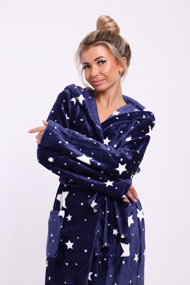 Женский халат создан для тех, кто ценит комфорт и стиль в каждом моменте. Мягкая приятная к телу ткань обеспечивает уют и легкость движений, позволяя наслаждаться домашними делами или отдыхом. Удобный крой подчёркивает естественную линию фигуры, а аккуратные детали придают изделию элегантный вид. Такой халат станет идеальным выбором для повседневного использования, утренних ритуалов или вечернего расслабления, создавая ощущение комфорта и гармонии каждый день.