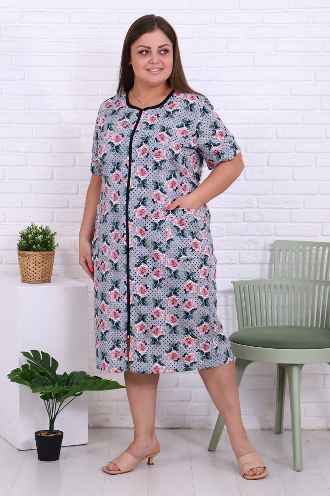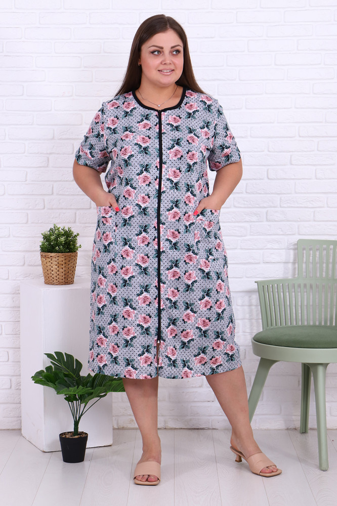 Женский халат создан для тех, кто ценит комфорт и стиль в каждом моменте. Мягкая приятная к телу ткань обеспечивает уют и легкость движений, позволяя наслаждаться домашними делами или отдыхом. Удобный крой подчёркивает естественную линию фигуры, а аккуратные детали придают изделию элегантный вид. Такой халат станет идеальным выбором для повседневного использования, утренних ритуалов или вечернего расслабления, создавая ощущение комфорта и гармонии каждый день.