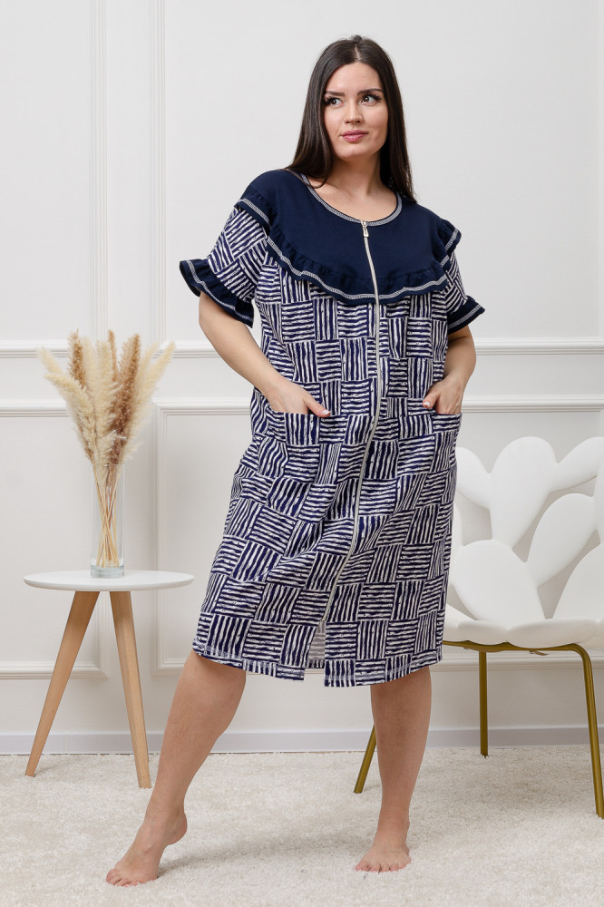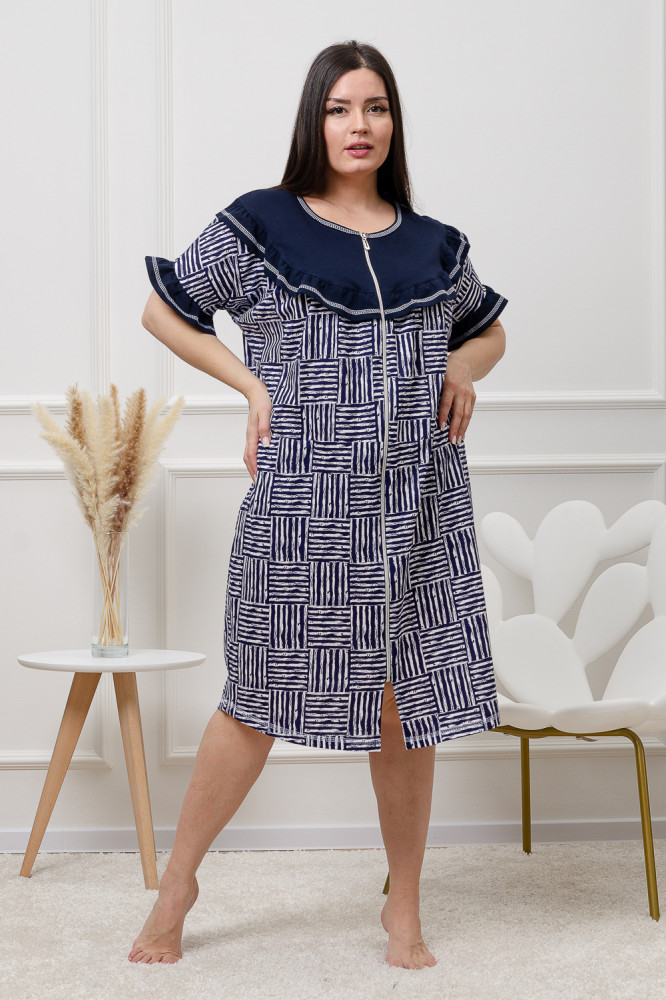 Женский халат создан для тех, кто ценит комфорт и стиль в каждом моменте. Мягкая приятная к телу ткань обеспечивает уют и легкость движений, позволяя наслаждаться домашними делами или отдыхом. Удобный крой подчёркивает естественную линию фигуры, а аккуратные детали придают изделию элегантный вид. Такой халат станет идеальным выбором для повседневного использования, утренних ритуалов или вечернего расслабления, создавая ощущение комфорта и гармонии каждый день.