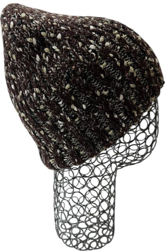 Шапка создана из тёплой смесовой пряжи «Вереск» с лёгким меланжем и деликатным блеском мини-пайеток. Благодаря продуманному сочетанию волокон модель держит форму, приятно прилегает и уверенно защищает от ветра.