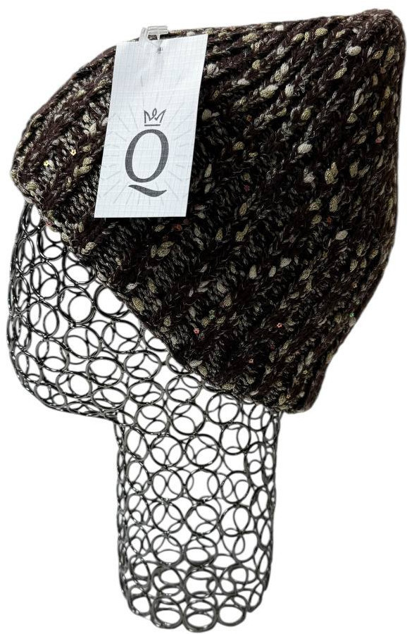 Особенности модели: двойная вязка усиливает теплоизоляцию, а меланж делает оттенок более глубоким и «живым». Мини-пайетки дают аккуратное сияние без лишней яркости — элегантный зимний акцент. Размер комфортно садится на 55–58 см.