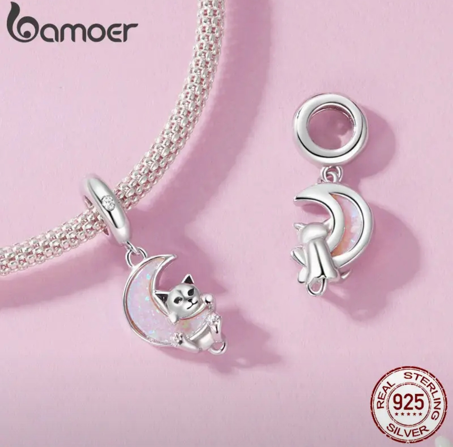 Bamoer Шарм-подвеска «Котенок и луна»
