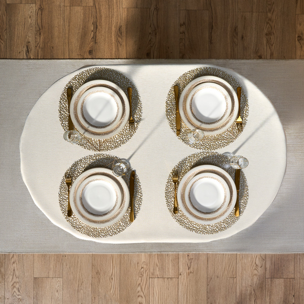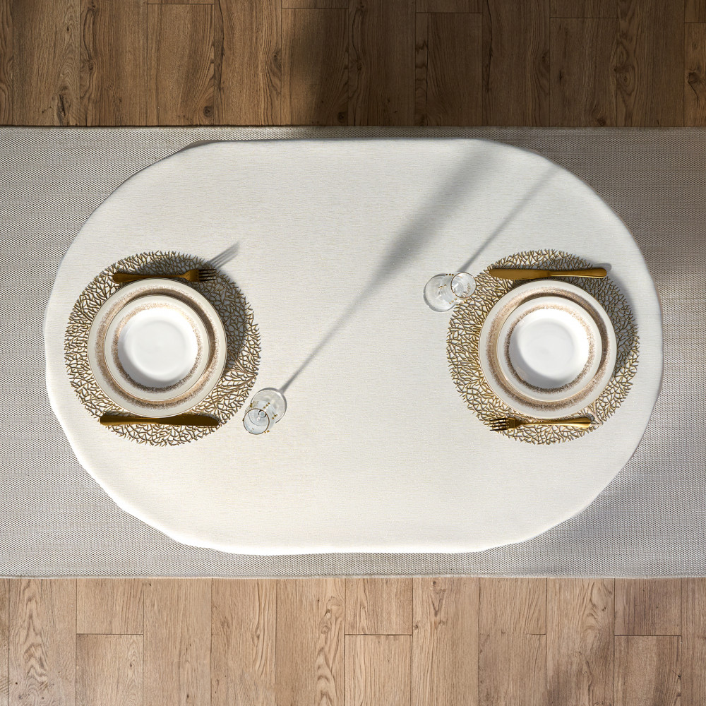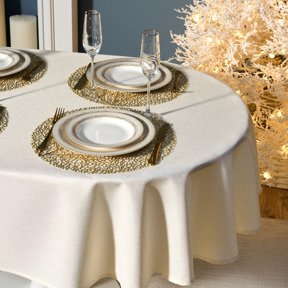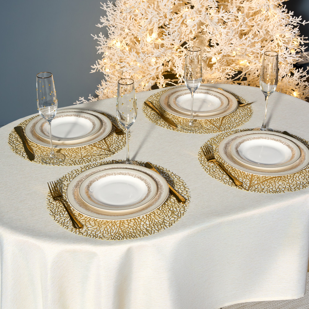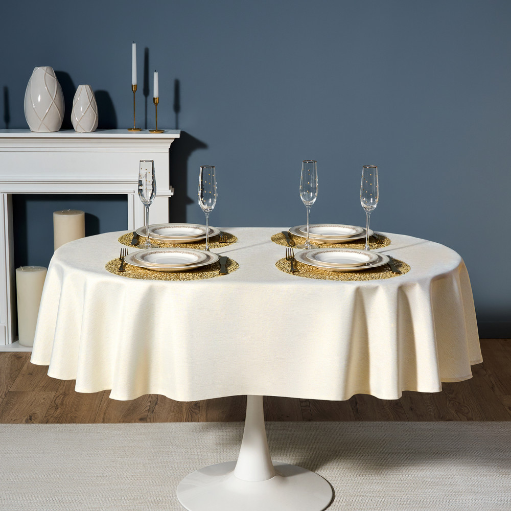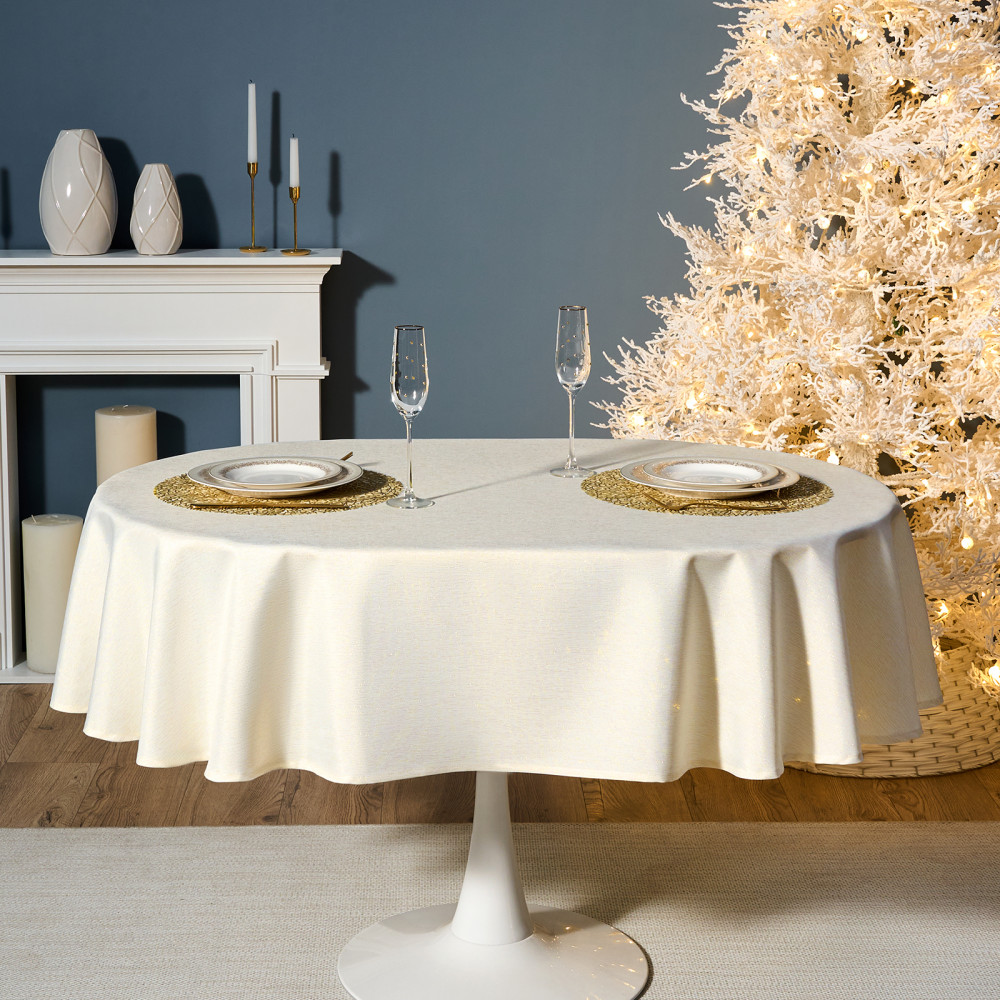 Скатерть от Lefard из коллекции «Феерия» — воплощение элегантности, уюта и праздничного настроения. Размер идеально подходит для овальных и прямоугольных столов, создавая аккуратный равномерный свес по краям. Эта декоративная скатерть станет изысканным украшением кухни, гостиной, столовой или любой комнаты дома, наполняя пространство теплом и атмосферой зимнего торжества. Благородный оттенок и лёгкое мерцание ткани придают сервировке изысканность и торжественность. Однотонная текстура с нитью люрекса красиво переливается при свете ламп и свечей, создавая мягкое сияние и визуальную глубину. Тканевая скатерть гармонично сочетается с посудой и аксессуарами, помогая оформить новогодний интерьер в едином стиле.