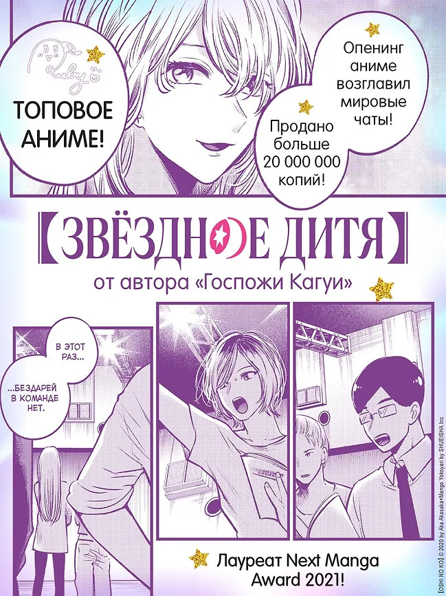 💳 Оплатить за товар можно при получении 🇰🇿 Есть бесплатная доставка по Казахстану 🎁 Копите бонусы с каждой покупки Серия: Графические романы «Звёздное дитя» — одна из топовых манг не только у себя на родине, но и по всему миру — впервые на русском языке! Продано больше 20 миллионов копий! Релиз первой серии аниме-адаптации вызвал широкий резонанс в соцсетях, а опенинг первого сезона возглавил мировые чарты. Как манга, так и аниме были неоднократно номинированы на престижные премии и взяли несколько наград. |