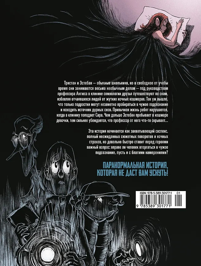 💳 Оплатить за товар можно при получении 🇰🇿 Есть бесплатная доставка по Казахстану 🎁 Копите бонусы с каждой покупки Серия: Графические романы Тристан и Эстебан — обычные школьники, но в свободное от учебы время они занимаются весьма необычным делом — под руководством профессора Ангюса в клинике сомнологии друзья путешествуют по снам, избавляя отчаявшихся людей от жутких ночных кошмаров. Так уж вышло, что только подростки могут незаметно пробираться в чужое подсознание и находить источник дурных снов. Привычная жизнь ребят нарушается, когда в клинику попадает Сара. Чем дольше Эстебан пребывает в кошмаре девочки, тем сильнее убеждается, что профессор от него что-то скрывает... |