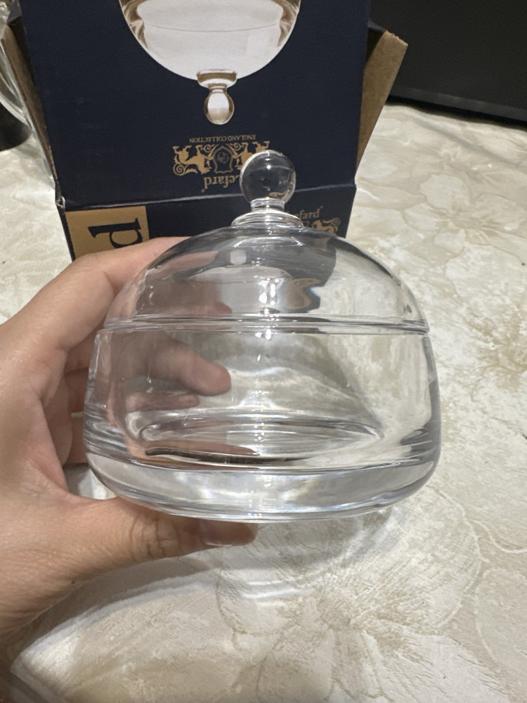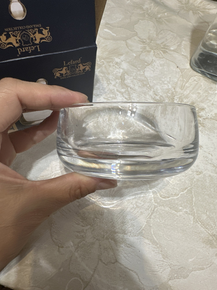 Не большая, красивая. Такая же конфетница очень тяжелая и большая. но красивая посуда и стильная