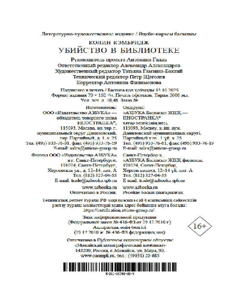 💳 Оплатить за товар можно при получении 🇰🇿 Есть бесплатная доставка по Казахстану 🎁 Копите бонусы с каждой покупки Серия: Преступление века! Англия, 1930-е годы. Жизнь в английском поместье подчинена строгому распорядку, а хозяйство должно работать как часы. Приученные к комфорту обитатели особняка не обращают внимания на многочисленную прислугу, в то время как слуги знают о хозяевах гораздо больше, чем те готовы допустить... |