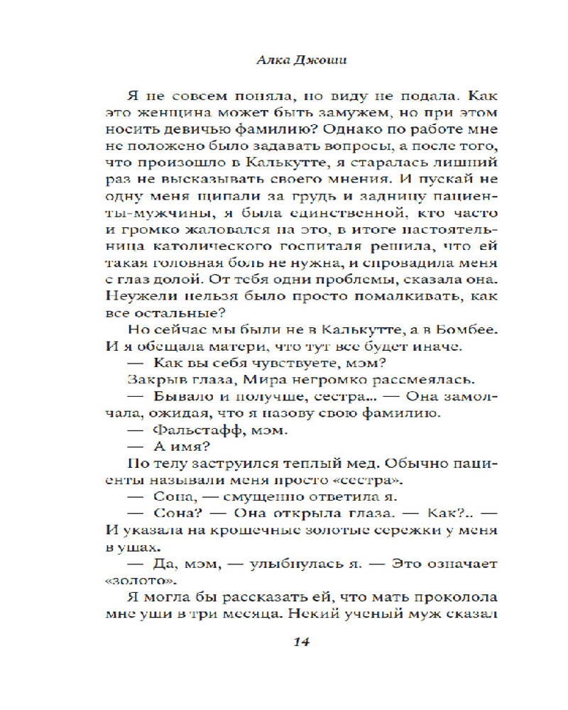 💳 Оплатить за товар можно при получении 🇰🇿 Есть бесплатная доставка по Казахстану 🎁 Копите бонусы с каждой покупки Серия: Имена. Зарубежная проза Индия, 1930-е годы. Юная Сона работает медсестрой в больнице, надеясь этим честным и непростым трудом когда-нибудь вытащить их с матерью из нищеты. У исполнительной и ответственной Соны есть все шансы построить неплохую карьеру, но ее положение становится шатким, когда она имеет неосторожность подружиться с новой пациенткой, известной художницей Мирой Новак. Знакомство с Мирой заставляет Сону осознать, насколько несмело она живет, опасаясь рисковать, пробовать новое и как-то выделяться. Незаконнорожденная дочь индианки и англичанина, она не чувствует принадлежности ни к тому, ни к другому народу. |