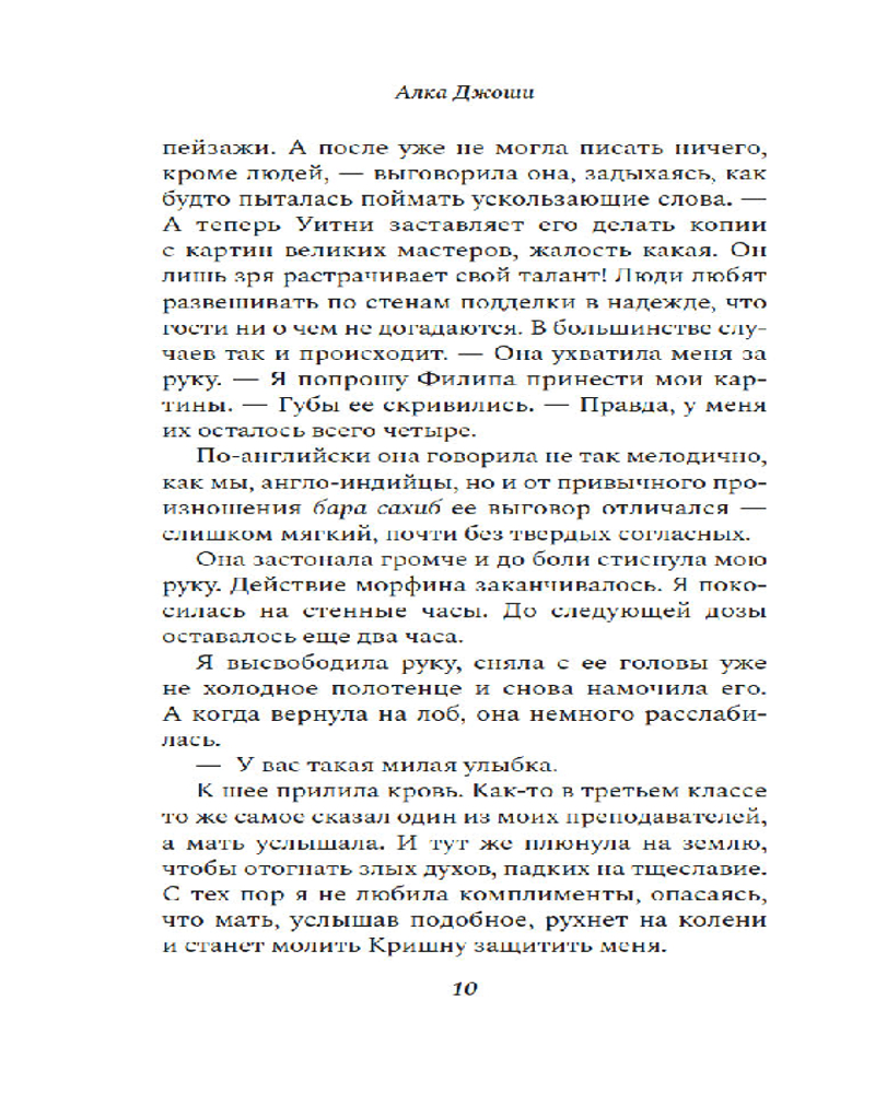 | Алка Джоши — американская писательница. Родилась в Индии, в 9 лет переехала в США. Имеет степень бакалавра Стэнфордского университета и степень магистра гуманитарных наук Калифорнийского колледжа искусств. Руководит рекламным и маркетинговым агентствами. Алка Джоши какое-то время жила во Франции и Италии, в настоящее время проживает со своим мужем в Пасифик-Гроув, Калифорния. |