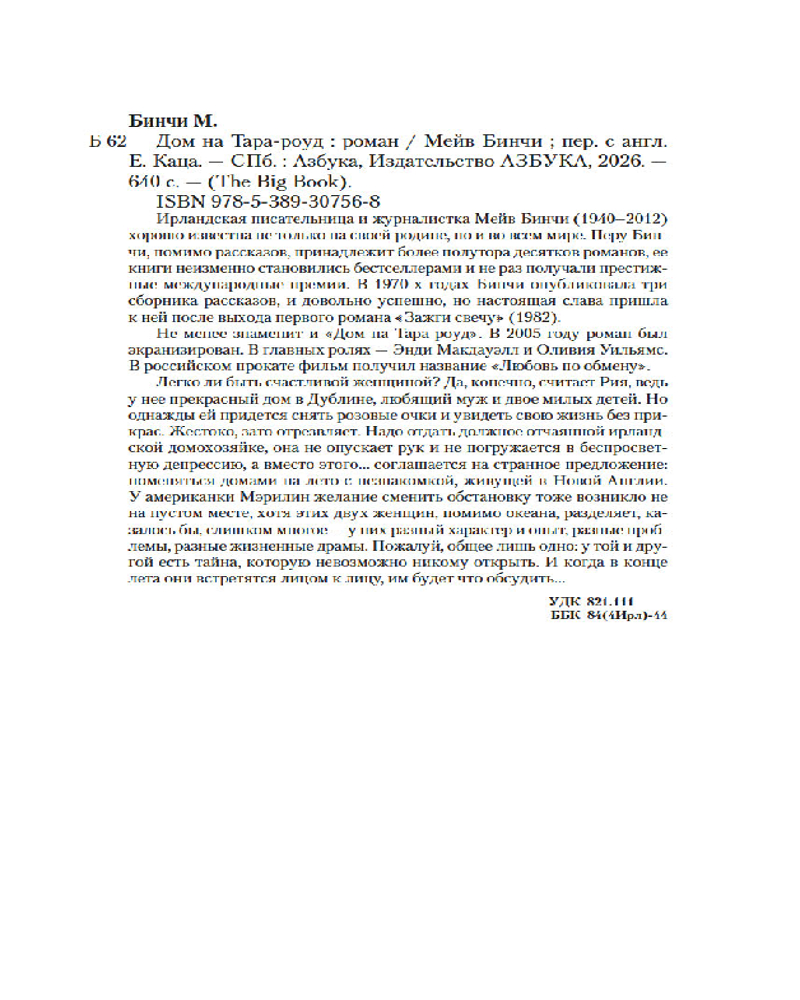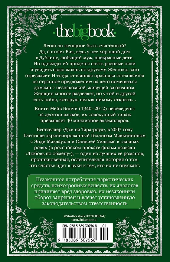 💳 Оплатить за товар можно при получении 🇰🇿 Есть бесплатная доставка по Казахстану 🎁 Копите бонусы с каждой покупки Серия: The Big Book Легко ли быть счастливой женщиной? Да, конечно, считает Рия, ведь у нее прекрасный дом в Дублине, любящий муж и двое милых детей. Но однажды ей придется снять розовые очки и увидеть свою жизнь без прикрас. Жестоко, зато отрезвляет. Надо отдать должное отчаянной ирландской домохозяйке, она не опускает рук и не погружается в беспросветную депрессию, а вместо этого... соглашается на странное предложение: поменяться домами на лето с незнакомкой, живущей в Новой Англии. У американки Мэрилин желание сменить обстановку тоже возникло не на пустом месте, хотя этих двух женщин, помимо океана, разделяет, казалось бы, слишком многое — у них разный характер и опыт, разные проблемы, разные жизненные драмы. Пожалуй, общее лишь одно: у той и другой есть тайна, которую невозможно никому открыть. И когда в конце лета они встретятся лицом к лицу, им будет что обсудить... |