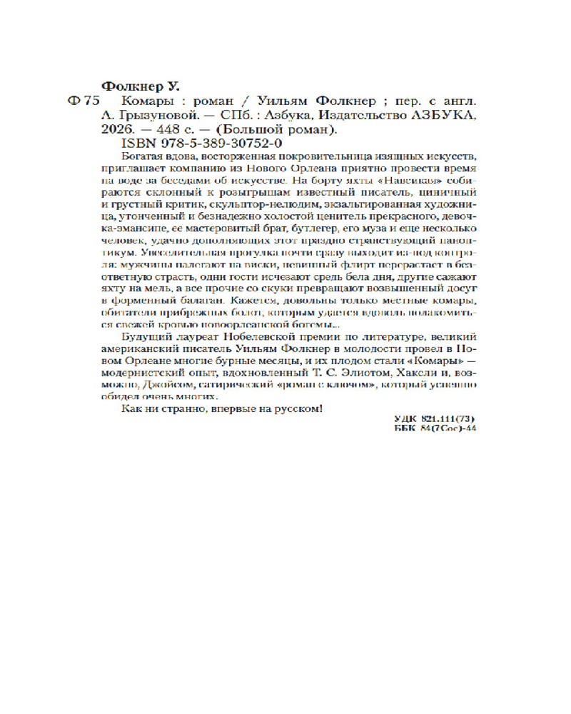 💳 Оплатить за товар можно при получении 🇰🇿 Есть бесплатная доставка по Казахстану 🎁 Копите бонусы с каждой покупки Серия: Большой роман Богатая вдова, восторженная покровительница изящных искусств, приглашает компанию из Нового Орлеана приятно провести время на борту яхты «Навсикая». Здесь собираются склонный к розыгрышам известный писатель, циничный и грустный критик, скульптор-нелюдим, экзальтированная художница, утонченный и безнадежно холостой ценитель прекрасного, девочка-эмансипе и еще несколько человек, удачно дополняющих этот праздно странствующий паноптикум. Увеселительная прогулка почти сразу выходит из-под контроля: мужчины налегают на виски, невинный флирт перерастает в безответную страсть, одни гости исчезают средь бела дня, другие сажают яхту на мель, а все прочие со скуки превращают возвышенный досуг в форменный балаган. Кажется, довольны происходящим только местные комары, обитатели прибрежных болот, которым вдоволь удается полакомиться свежей кровью новоорлеанской богемы... |