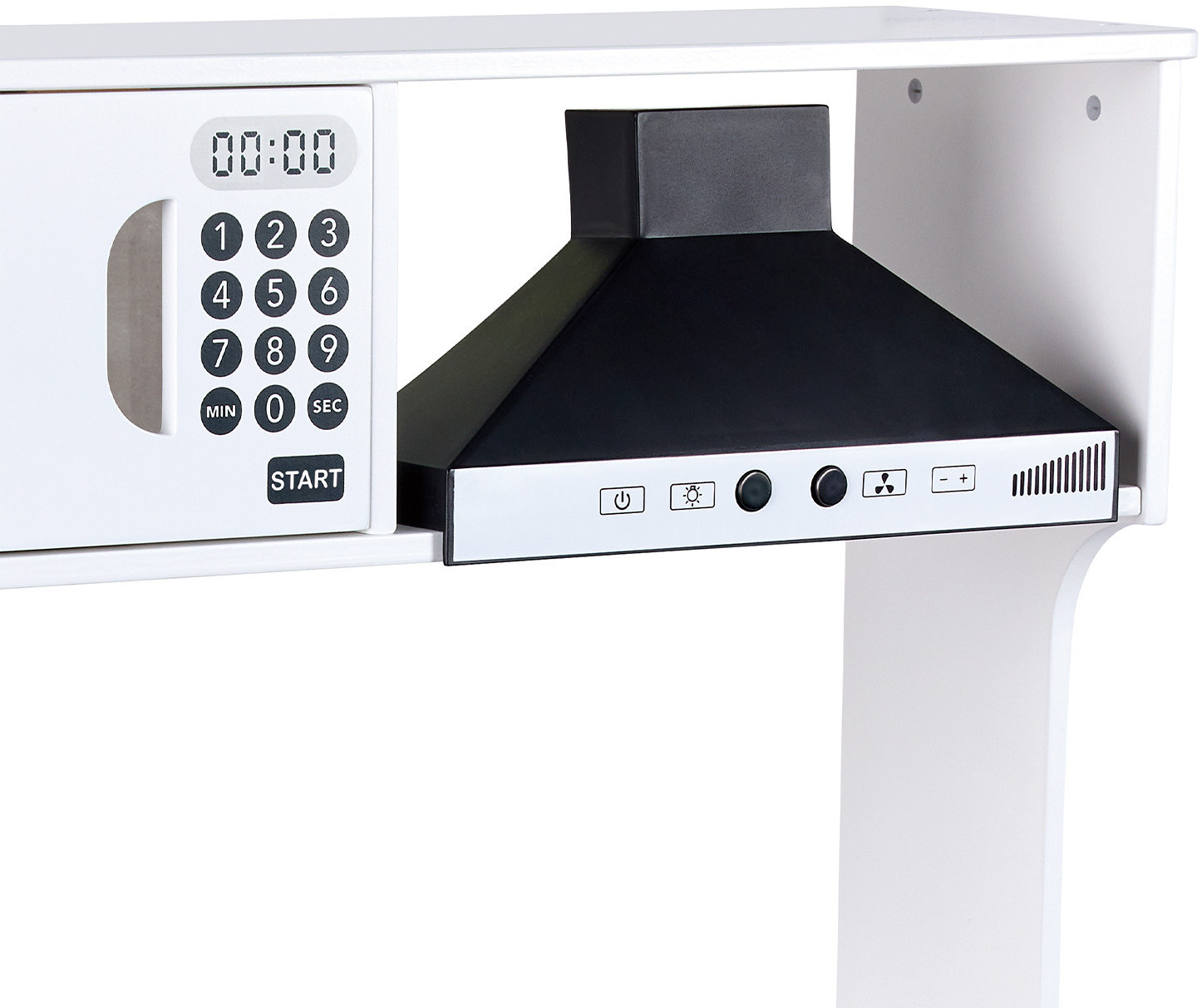 • вытяжка, оснащенная кнопкой включения света и звука, имитирует шум работающей техники;