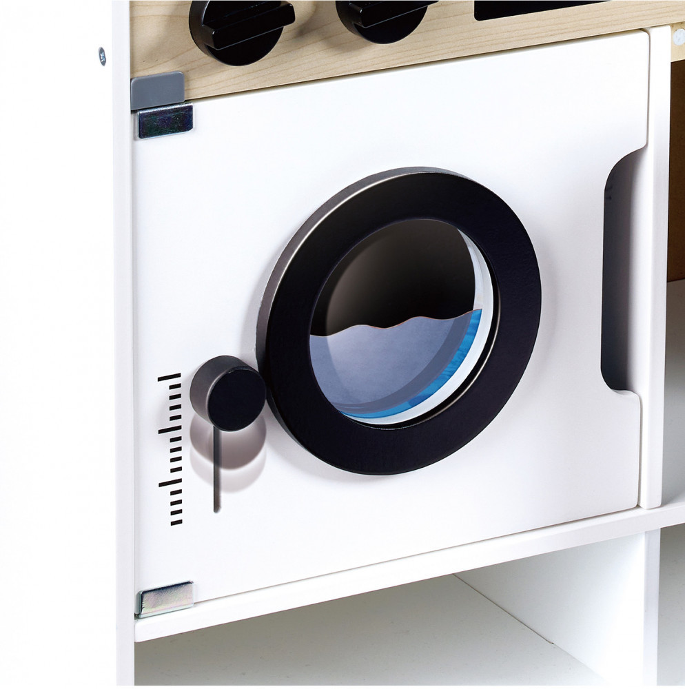 • полочки под духовкой и стиральной машиной служат удобными местами для хранения игрушек и аксессуаров;