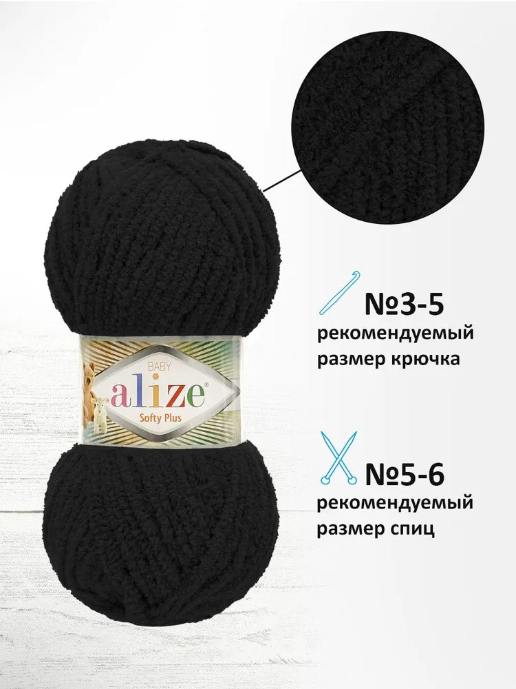 Alize Пряжа для вязания «Softy Plus», цвет 1060 Черный