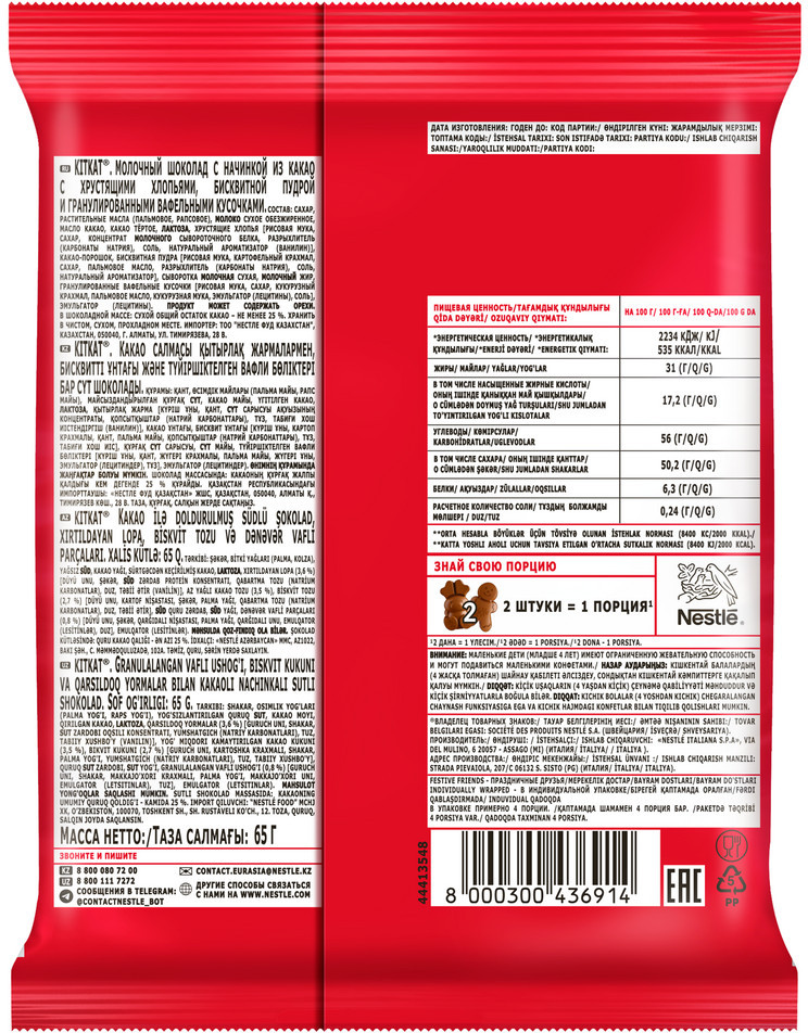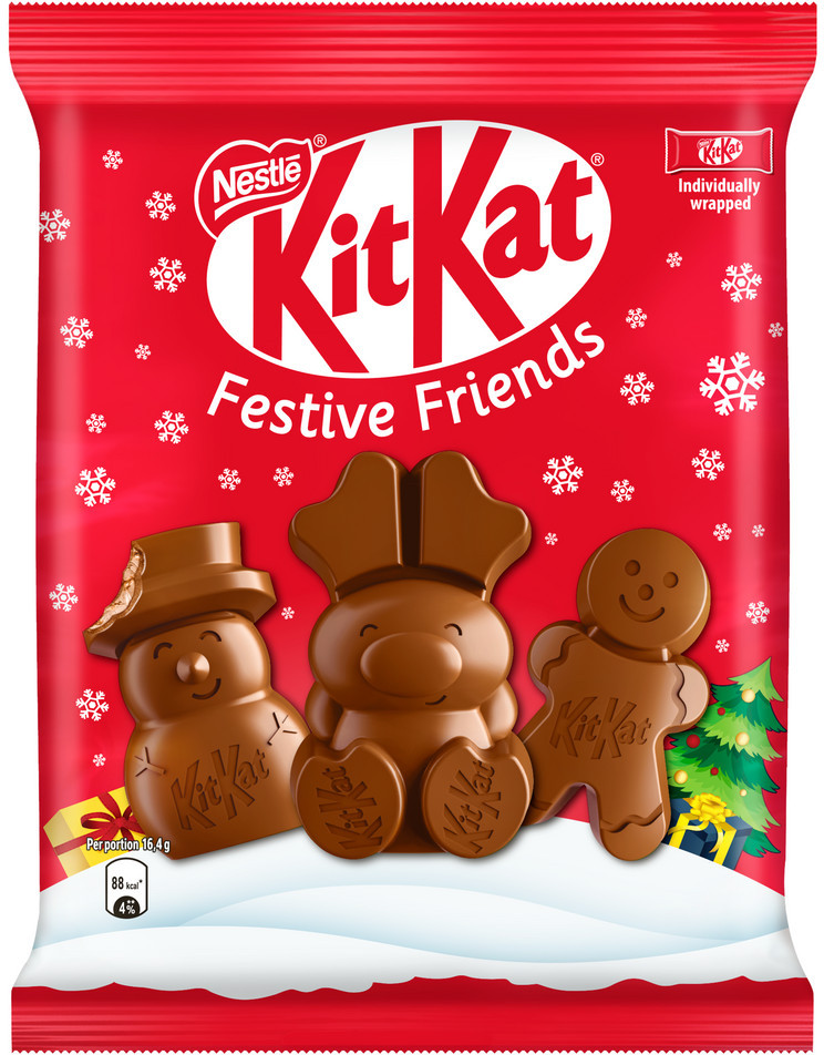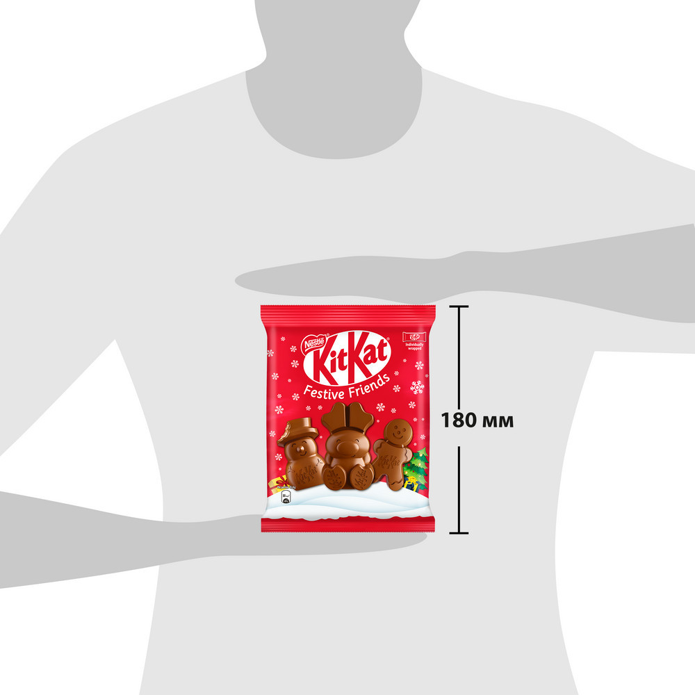 KitKat Шоколад молочный с какао, хрустящими хлопьями, бисквитной пудрой и вафельными кусочками «Festive Friends»