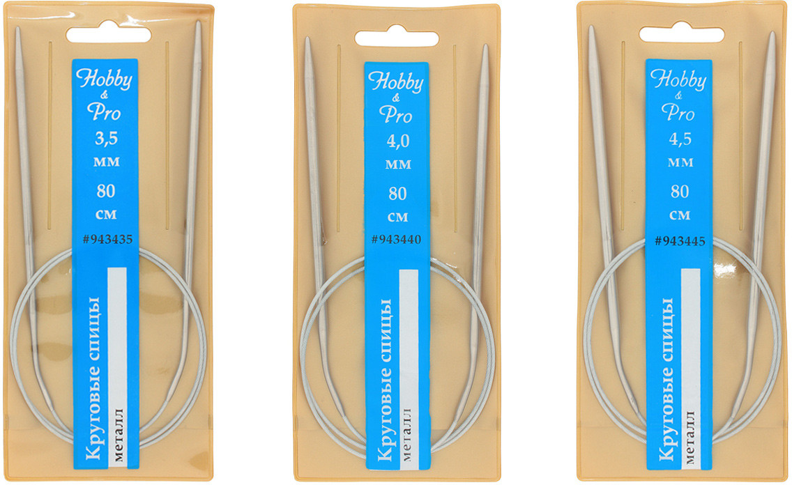Спицы для вязания круговые из нержавеющей стали с металлическим тросиком от Hobby&Pro — идеальный инструмент для работы как в круговой, так и в прямой техниках вязания. В набор входят спицы круговые трёх размеров, с помощью которых можно создавать разнообразные вязаные изделия, такие как свитеры, манишки, шапки, снуды, а также более объемные вещи и широкие полотна: пледы и коврики.
