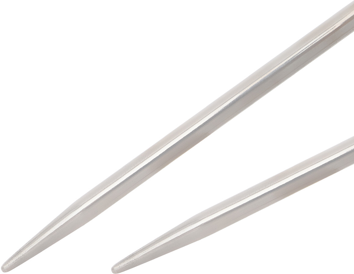 Спицы для вязания выполнены из высококачественной нержавеющей стали. Благодаря этому долговечному и универсальному материалу вы можете вязать изделия любой плотности и использовать различные типы пряжи: от тонкой шерсти до более толстых нитей. Гладкая поверхность спиц обеспечивает легкое скольжение пряжи, предотвращая ее деформацию и позволяя сохранить структуру и ворсистость волокна. Это особенно важно для тех, кто работает с деликатной и пушистой пряжей, ведь такая гладкость снижает риск образования зацепок и петелек.