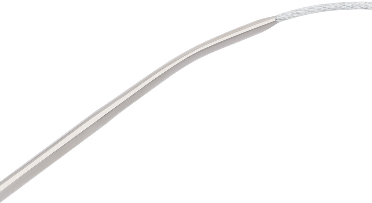 Закругленные концы легко подцепляют петли, увеличивая скорость вязания. Кроме того, на переходе к тросику спицы изогнуты — это позволяет петлям легко соскальзывать на тросик, не создавая дополнительных трудностей для вязальщицы. Место соединения спицы и тросика выполнено идеально гладким, поэтому волокна пряжи не цепляются. Спицы круговые в наборе позволят работать с любыми видами пряжи без лишних усилий. Металлический тросик, покрытый тонким полимерным слоем, отличается высокой прочностью и гибкостью. Он не перекручивается в процессе работы, позволяя сосредоточиться на творческом процессе.
