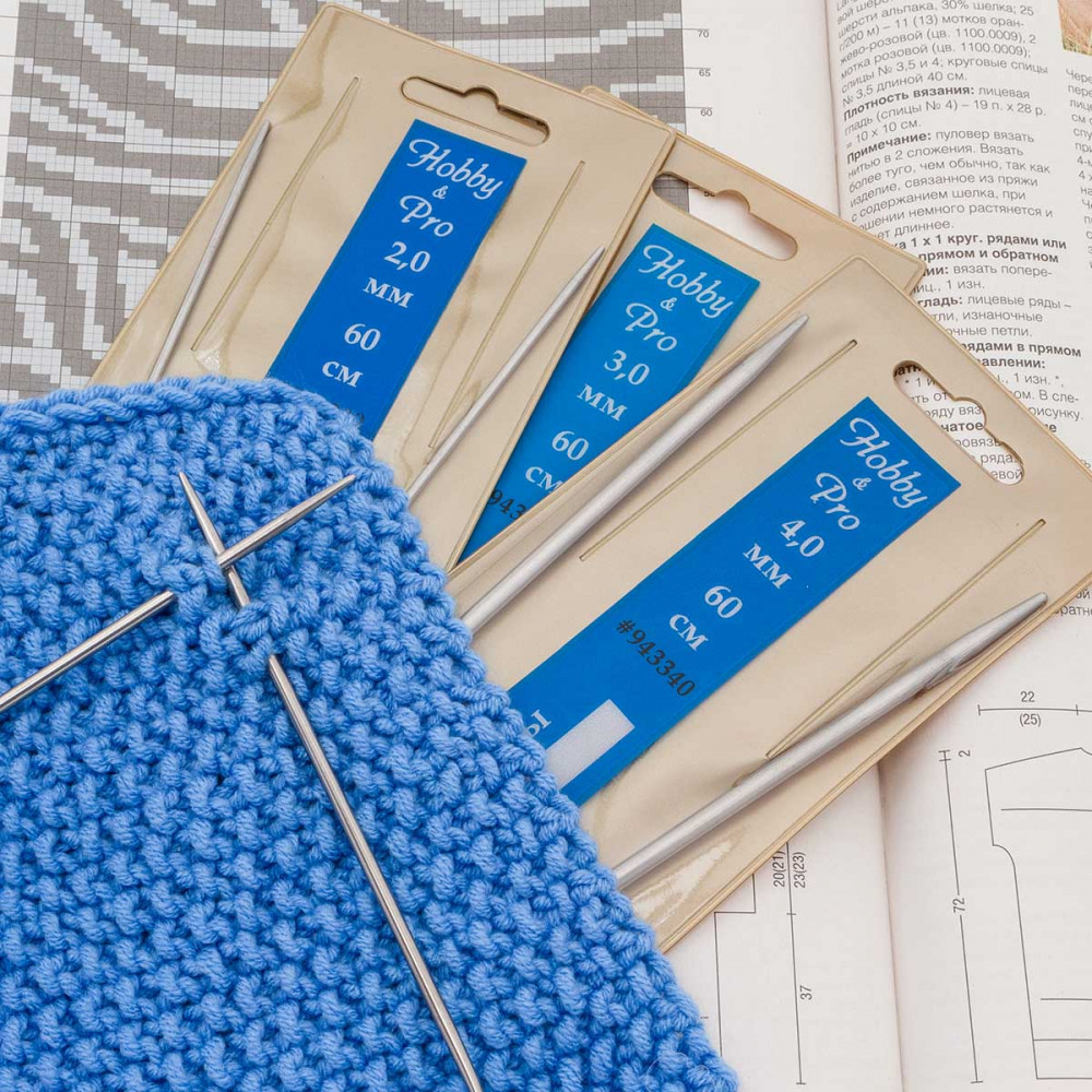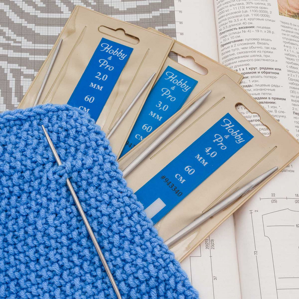 Спицы для вязания круговые из нержавеющей стали с металлическим тросиком от Hobby&Pro — идеальный инструмент для работы как в круговой, так и в прямой техниках вязания. В набор входят спицы круговые трёх размеров, с помощью которых можно создавать разнообразные вязаные изделия, такие как свитеры, манишки, шапки, снуды, а также более объемные вещи и широкие полотна: пледы и коврики.
