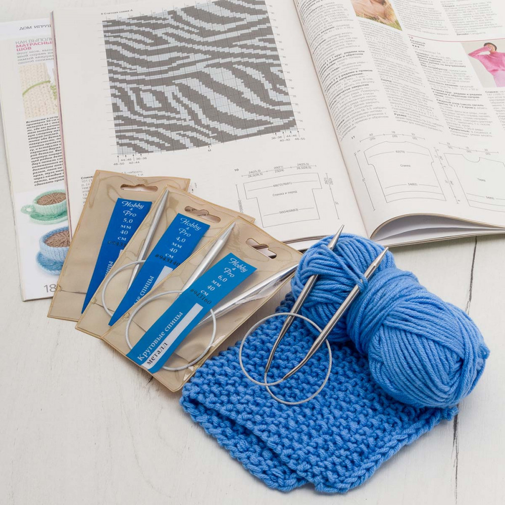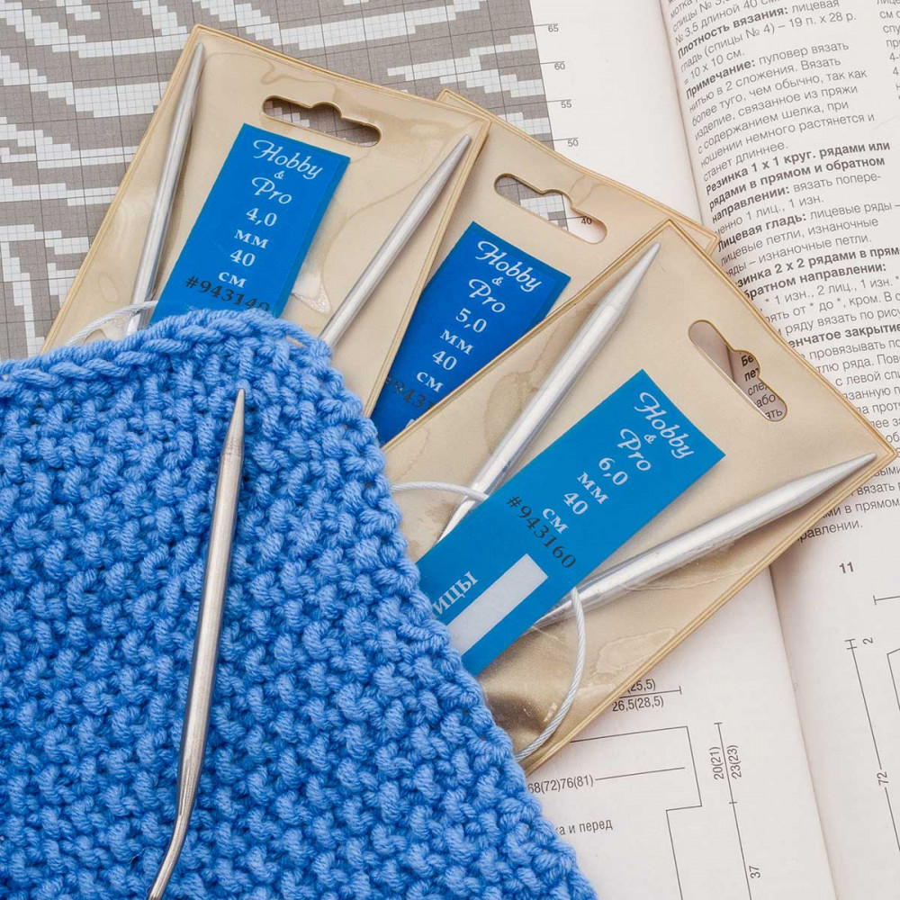 Спицы для вязания круговые из нержавеющей стали с металлическим тросиком от Hobby&Pro — идеальный инструмент для работы как в круговой, так и в прямой техниках вязания. В набор входят спицы круговые трёх размеров, с помощью которых можно создавать разнообразные вязаные изделия, такие как свитеры, манишки, шапки, снуды, а также более объемные вещи и широкие полотна: пледы и коврики.