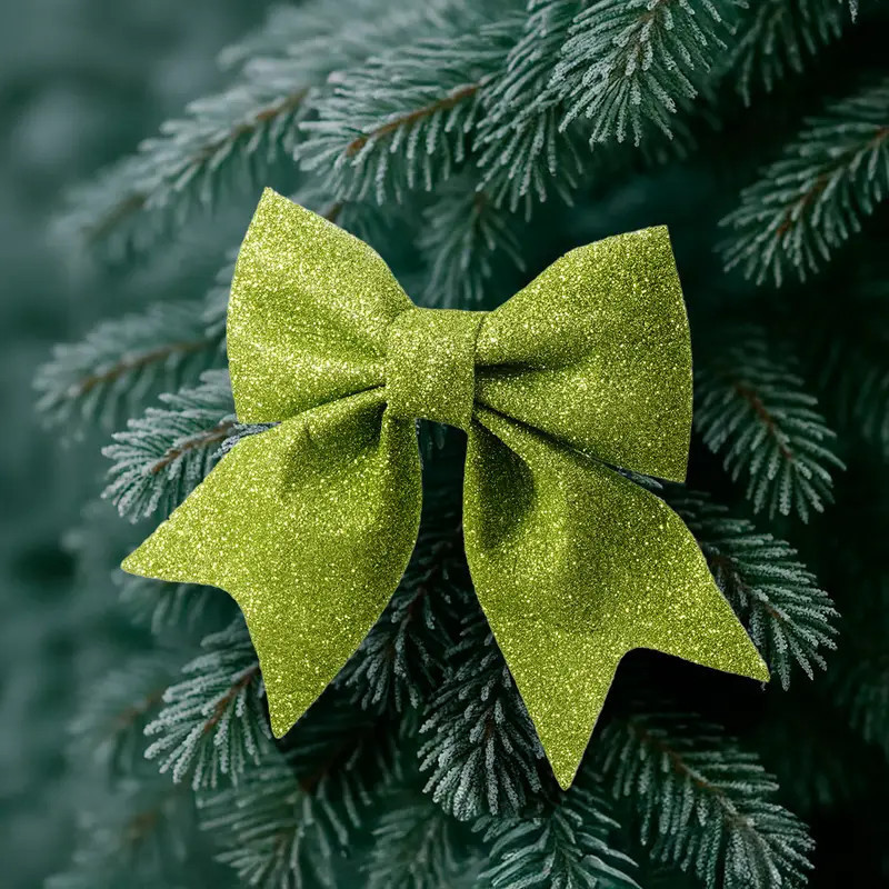 Новогодние бантики — это классическое украшение для ёлки, которое моментально создаёт праздничное настроение. Достаточно прикрепить их к веткам, и дом наполняется атмосферой тепла и уюта. На каждом бантике предусмотрено удобное крепление из гибкой проволоки, что позволяет легко зафиксировать украшение на ели, венках или гирляндах. Размер каждого бантика — 11 см.