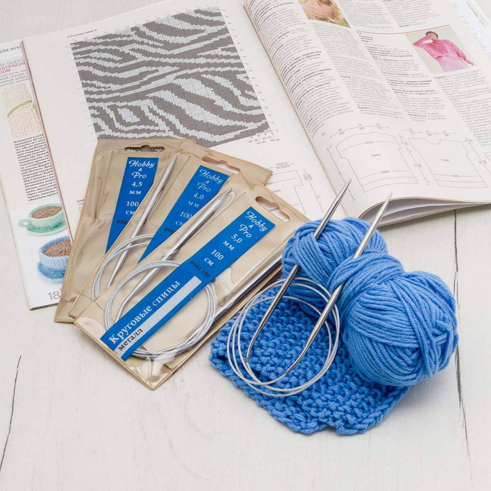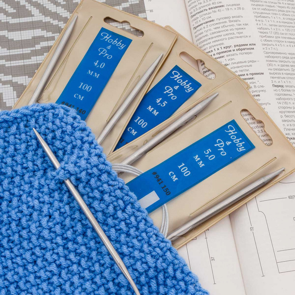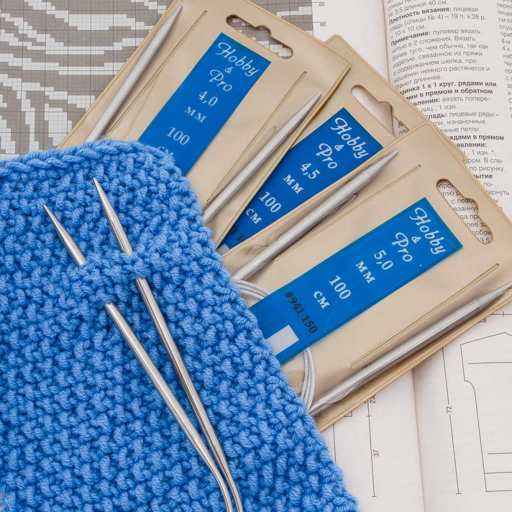 Спицы для вязания круговые из нержавеющей стали с металлическим тросиком от Hobby&Pro — идеальный инструмент для работы как в круговой, так и в прямой техниках вязания. В набор входят спицы круговые трёх размеров, с помощью которых можно создавать разнообразные вязаные изделия, такие как свитеры, манишки, шапки, снуды, а также более объемные вещи и широкие полотна: пледы и коврики.