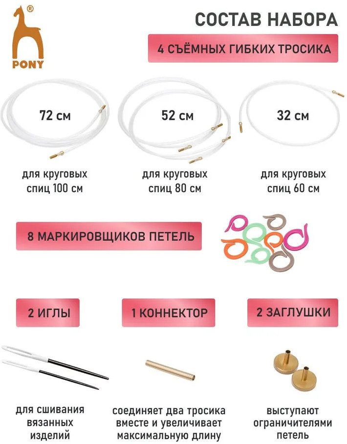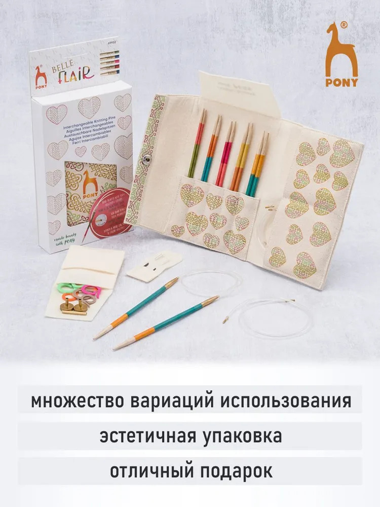 | Pony Набор съемных спиц для вязания с вязальными принадлежностями «Belle»+1616 (бонусов)