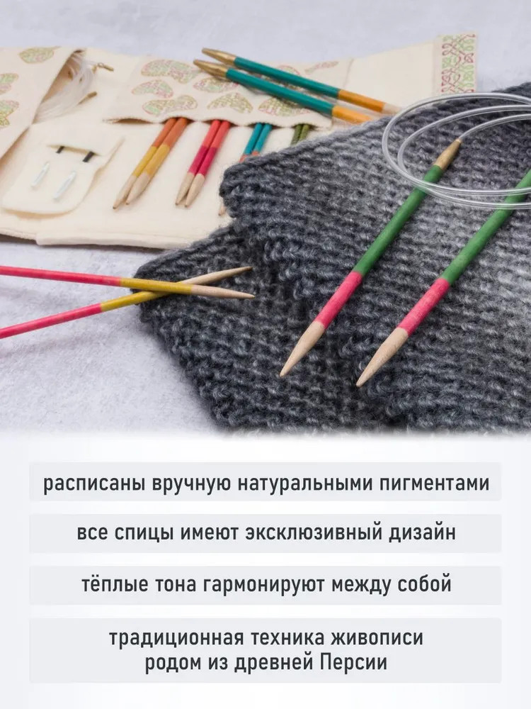Серия: Flair Набор спиц для вязания и вязальных принадлежностей «Belle» — это идеальный подарок для любителей вязания! В наборе собрано все необходимое, чтобы связать широкое полотно и бесшовные изделия: рукава, горловину в круговой и прямой техниках. В набор входят различные по размеру сменные спицы для вязания: 3 мм, 3.5 мм, 4 мм, 4.5 мм, 5 мм, которые обеспечивают плавное скольжение нитей и удобство для рук. Все принадлежности упакованы в удобный текстильный чехол на кнопке. Внутреннее пространство, выполненное в мягких пастельных тонах, оснащено тремя карманами, которые могут вместить спицы, маркеры, иголки и тросики.