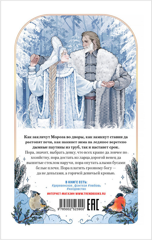 СтужаВ данный момент этот товар отсутствует в продаже. Возможно, у нас найдется аналогичный или похожий товар здесь. Серия: trendbooks novella Как закличут Мороза во дворы, как замкнут ставни да растопят печи, как накинет зима на ледяное веретено дымные паутины из труб, так и настанет срок. Пора, значит, выбрать девку, что всех краше да ловчее по хозяйству, пора достать из ларца дорогой венец да вышитые стеклом наручи, пора опутать алыми бусами белые плечи. Пора платить грозному богу — да не деньгами, а горячей девичьей кровью. |