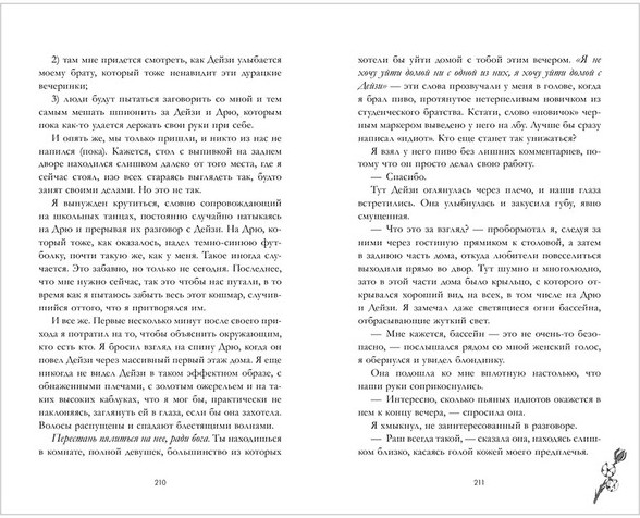 Как завоевать девушкуВ данный момент этот товар отсутствует в продаже. Возможно, у нас найдется аналогичный или похожий товар здесь. Серия: trendbooks Спортивный ромком с горячими футболистами, дерзкой героиней и неожиданным любовным треугольником. Я, Дрейк Колтер, знаю, как завоевать любую девушку, но не ищу ничего серьезного. В отличие от моего брата-близнеца Дрю. Бывает же такое: мы с ним идентичны внешне, но характеры у нас абсолютно разные. Как и взгляд на отношения. Так было пока я не встретил Дейзи Беннет. Умная, саркастичная и невероятно сексуальная. Впервые я хочу по-настоящему поменяться местами с моим братом-заучкой. Но что станет с чувствами, построенными на обмане, если правда выйдет наружу? |