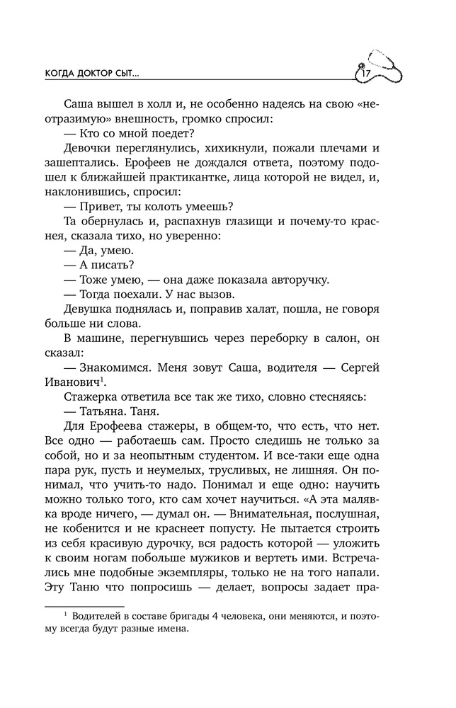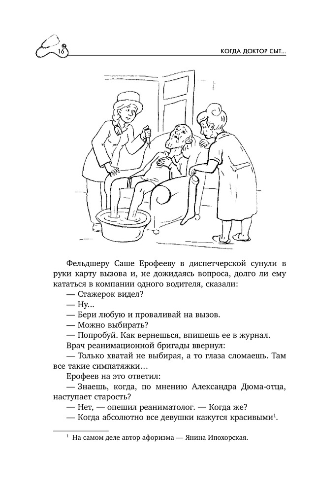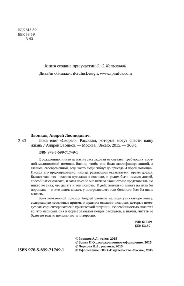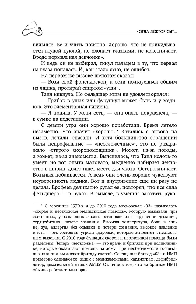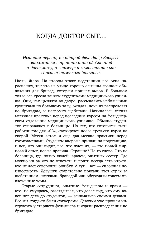 Книга очень хорошая. Удобный шрифт. Будет интересна поклонникам медицинских историй и всем, кто интересуется неотложной доврачебной помощью. Что делать до приезда скорой помощи в случае - ожога 2-3-й степени, отравления, гликемической атаки, инфаркта миокарда, инсульта и др. Рекомендую.