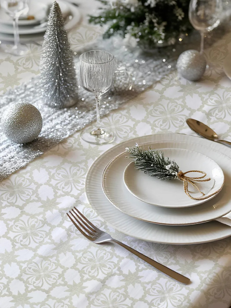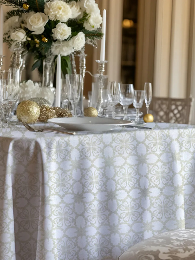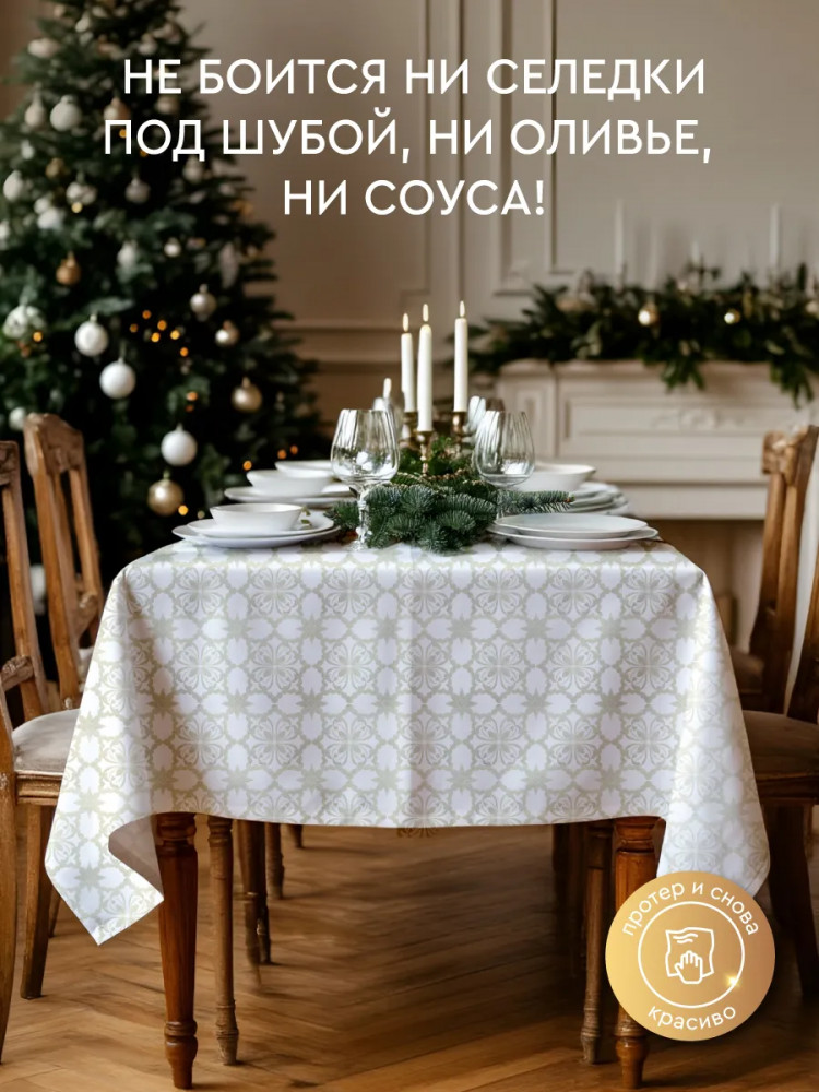 Жаккардовая скатерть с водоотталкивающей пропиткой. Эта скатерть станет идеальным дополнением вашего стола, придавая ему элегантный и стильный вид. Скатерть изготовлена из 100% полиэстера, она отличается высокой износостойкостью и долговечностью, что делает её практичным выбором для повседневного использования. Благодаря специальной водоотталкивающей пропитке, скатерть защищает поверхность от пятен и влаги, что значительно упрощает уход за ней. Вы можете не беспокоиться о случайных пролитиях — достаточно просто протереть поверхность, и она снова будет выглядеть как новая. Такое надежное защитное покрытие незаменимо для вашего обеденного столика.