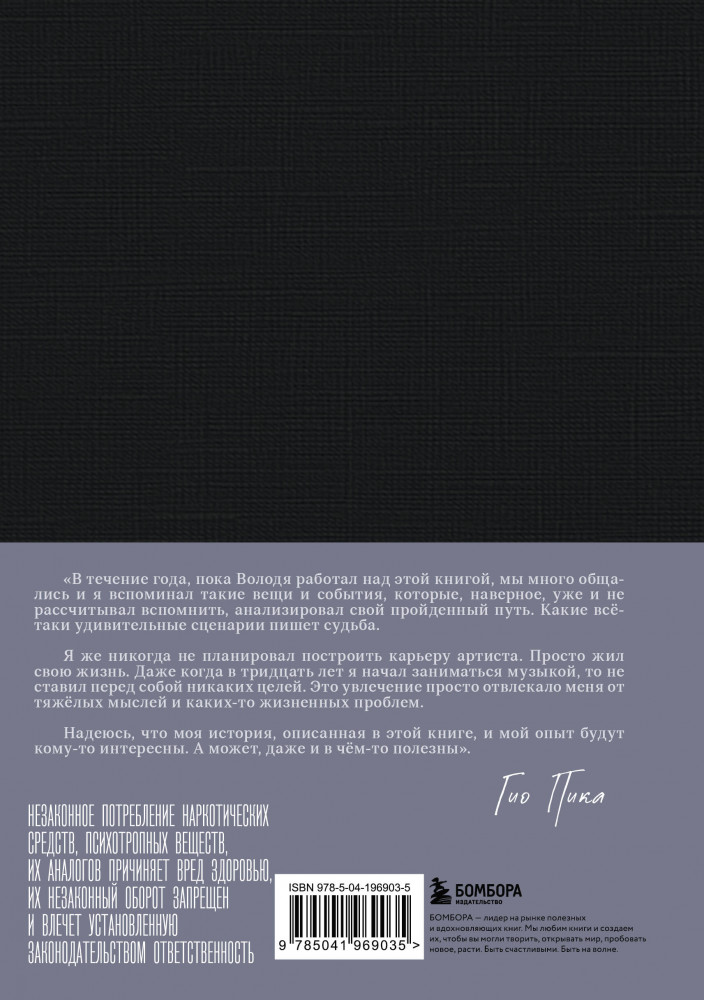 💳 Оплатить за товар можно при получении 🇰🇿 Есть бесплатная доставка по Казахстану 🎁 Копите бонусы с каждой покупки Серия: Районы и стадионы: главные книги о хип-хопе и рэп-музыке Авторизованная биография одного из самых прослушиваемых артистов страны. Для большого количества людей Гио Пика — не просто любимый артист, но и настоящий единомышленник: миллионы прослушиваний на стримингах, сотни тысяч подписчиков и всенародная известность конвертируются в уважение улиц городов России и ближайшего зарубежья. Человек, который чувствует жизнь такой, какая она есть: любовь в его песнях всегда теплая и идущая от сердца, а описания мрачных сторон жизни — мрачные, но не лишенные человеческого. Но что же скрывается за образом одного из самых самобытных музыкантов, пишущих на русском языке? |
