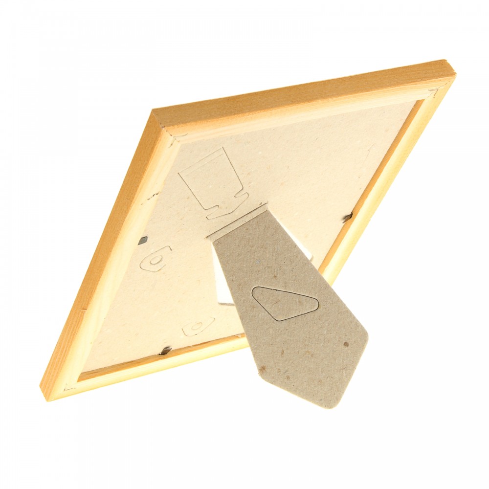 Рамка сделана из соснового багета, с внешней стороны фотографии находится защитное стекло. Багет обработан морилкой и покрыт лаком. Задник фоторамки выполнен из картона. В каждую рамку вложен фирменный вкладыш. Каждая рамка упакована в термопленку.