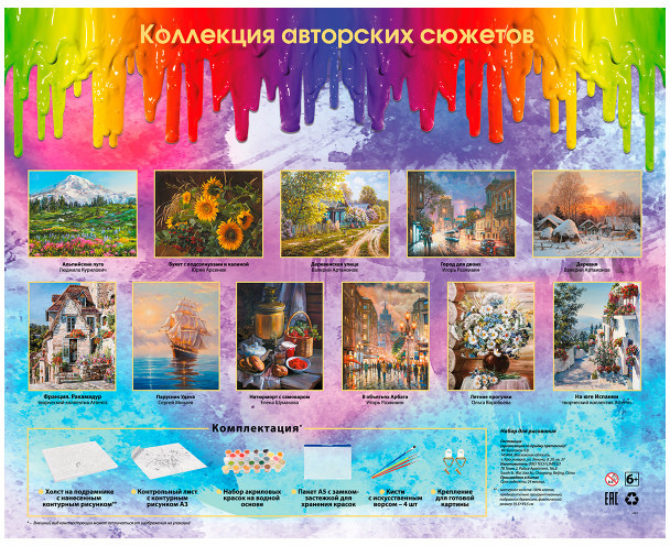 💳 Оплатить за товар можно при получении 🇰🇿 Есть бесплатная доставка по Казахстану 🎁 Копите бонусы с каждой покупки Серия: Зима Рисуйте! Создавайте прекрасные сюжеты, станьте настоящим художником! С наборами Живопись на холсте это легко и просто, в комплекте есть все для работы над картиной на холсте. Просто возьмите стакан с водой и бумажную салфетку и время для творчества наступило. Размер 50×40 см оптимальный для того, чтобы получился красивый детализированный сюжет. Основа картины — хлопковый холст на деревянном подрамнике с напечатанной схемой изображения. Холст загрунтован и полностью готов к нанесению краски, акриловые краски на водной основе экологически безопасны, номера на баночках соответствуют номерам на схеме. Количество красок достаточное для раскрашивания картины, даже в 2 слоя. |