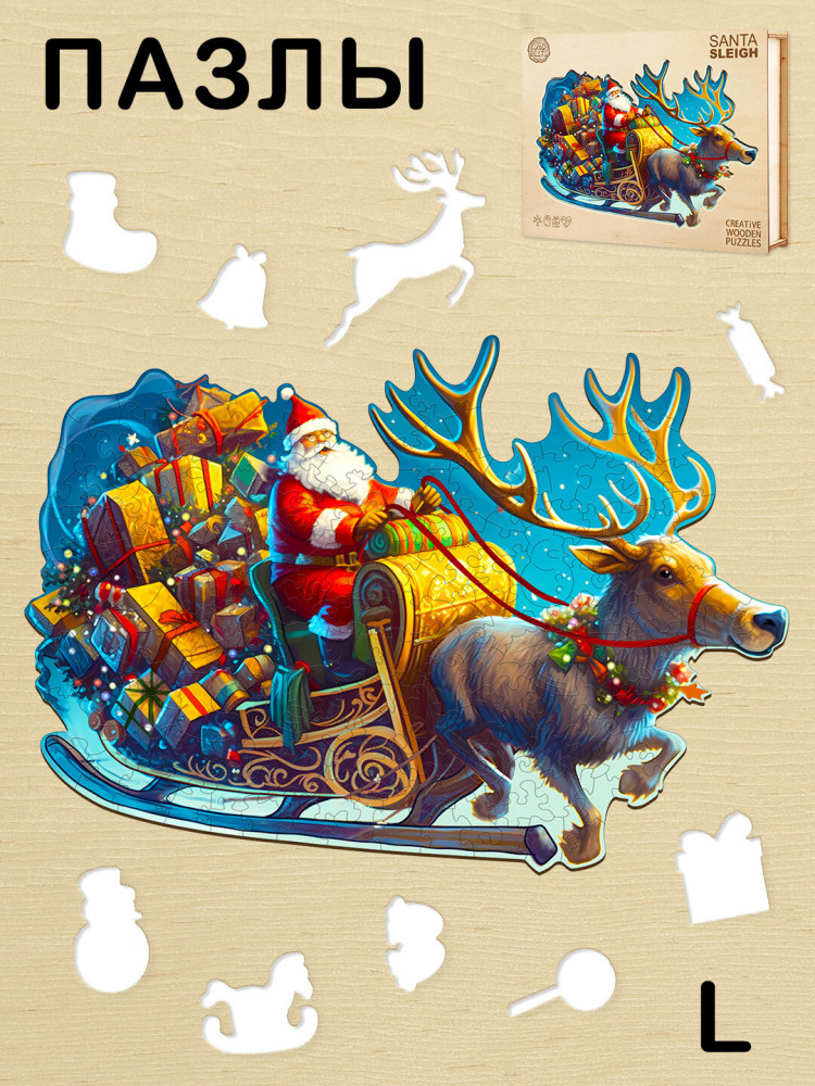 Woodbests Пазл деревянный «Новогодние сани»+507
