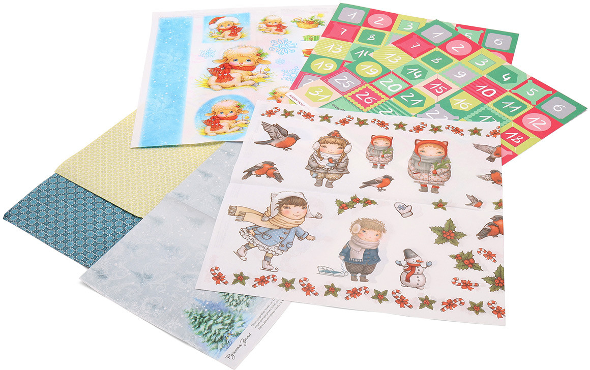 • бумага для скрапбукинга двусторонняя «Зимние каникулы» 30.5×30.5 см 180 г/м2, 10 шт.;