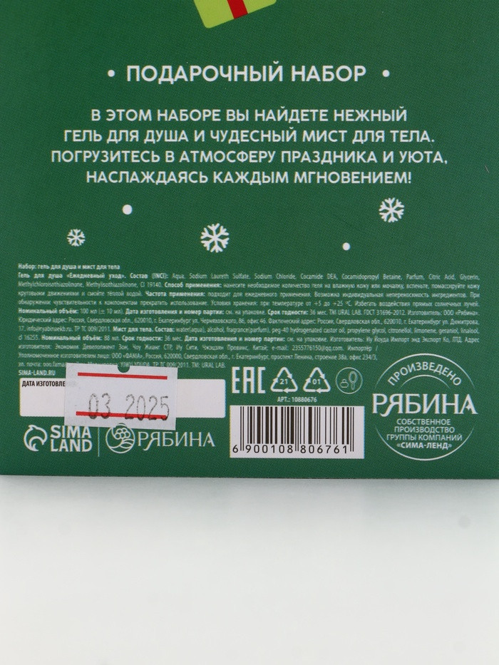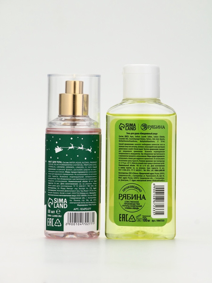 💳 Оплатить за товар можно при получении 🇰🇿 Есть бесплатная доставка по Казахстану 🎁 Копите бонусы с каждой покупки «Новогодний подарочный набор косметики: гель для душа и мист для тела». Подарите себе или близким ощущение праздника и свежести с нашим новогодним набором косметики! В наборе вы найдёте гель для душа (100 мл) и мист для тела (88 мл). Набор станет отличным подарком для себя или близких. Он подходит для ежедневного использования и поможет создать праздничное настроение. Порадуйте себя и своих близких качественным уходом и приятным ароматом в новогодние праздники! |