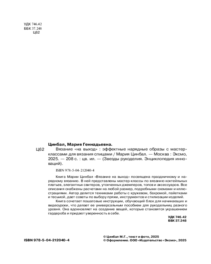 💳 Оплатить за товар можно при получении 🇰🇿 Есть бесплатная доставка по Казахстану 🎁 Копите бонусы с каждой покупки Серия: Звезды рукоделия. Энциклопедия инноваций Да, праздничные вещи вяжут! И это не миф, не экзотика и не прихоть. Это новый взгляд на привычное рукоделие. Забудьте про серые свитеры для тепла и скучные джемперы под куртку. Вязание может быть ярким, выразительным и нарядным. Вещи, созданные своими руками, способны сиять так же, как дорогие дизайнерские наряды. Они делают вас заметной. Они создают настроение. Они превращают обычный день в праздник. |