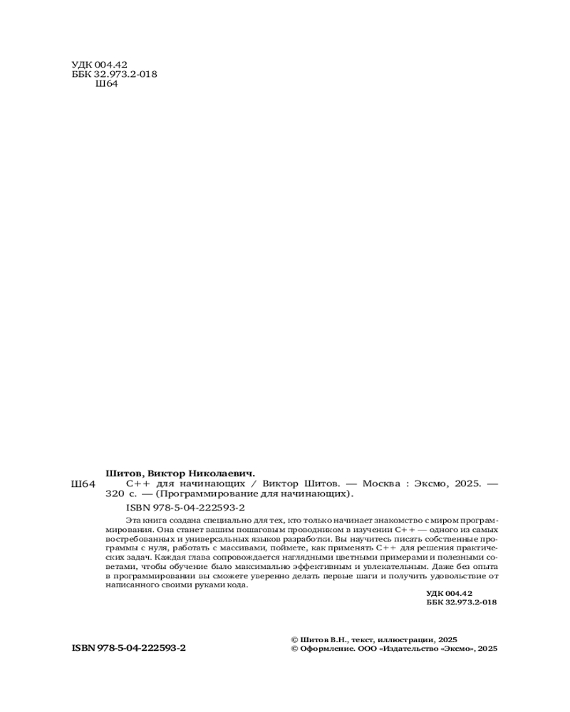 💳 Оплатить за товар можно при получении 🇰🇿 Есть бесплатная доставка по Казахстану 🎁 Копите бонусы с каждой покупки Серия: Программирование для начинающих (обложка) После прочтения этой книги вы научитесь программировать на C++. Благодаря практическим заданиям вы получите отличное представление об основах программирования на языке C++. Просто следуйте инструкциям — и вы научитесь создавать простые программы, разберетесь с ключевыми концепциями разработки и поймете, как применять C++ для решения практических задач. Скачайте примеры кода бесплатно и приступайте к работе сразу же! |
