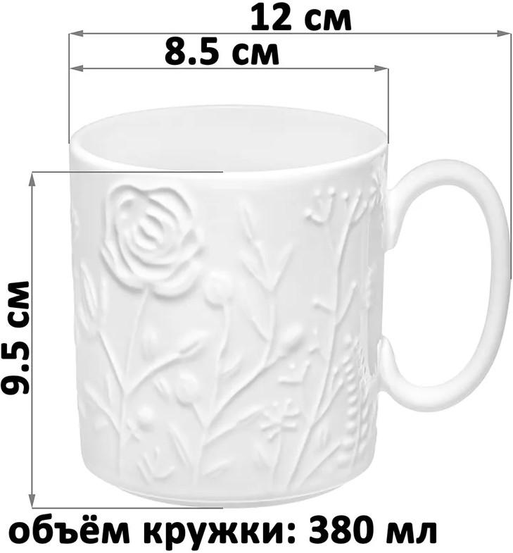 💳 Оплатить за товар можно при получении 🇰🇿 Есть бесплатная доставка по Казахстану 🎁 Копите бонусы с каждой покупки Серия: Полевые цветы Набор 4 кружек из серии «Полевые цветы» от Elan Gallery предназначен для эстетичной сервировки вашего стола. Размер каждой ёмкости — 12×8.5×9.5 см, объём — 380 мл. Выполнены из высококачественного белого фарфора. Он не впитывает цвет напитков и легко отмывается, благодаря чему надолго сохраняет свою белизну. Поверхность изделий украшает рельефный узор в виде тонких полевых цветов. Кофейные кружки помогут вам провести множество приятных завтраков с капучино и латте, а также уютные чайные вечера с конфетами, вафлями, другими десертами и сладостями. Подойдут ценителям чая и кофе, которые любят пить из красивой и необычной посуды. Согрейтесь зимой любимым напитком: какао с маршмэллоу, ягодным чаем или горячим шоколадом. Летом освежитесь домашним лимонадом или морсом. |