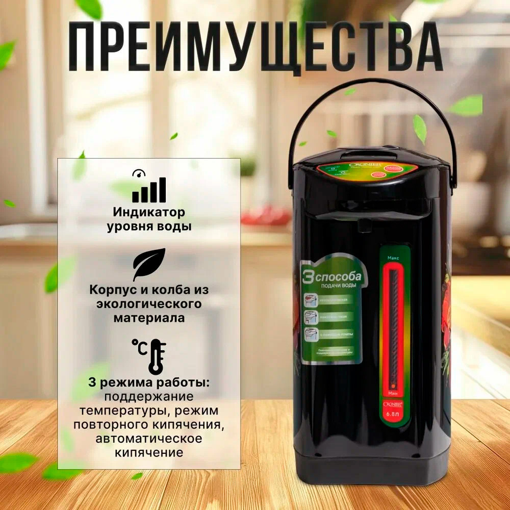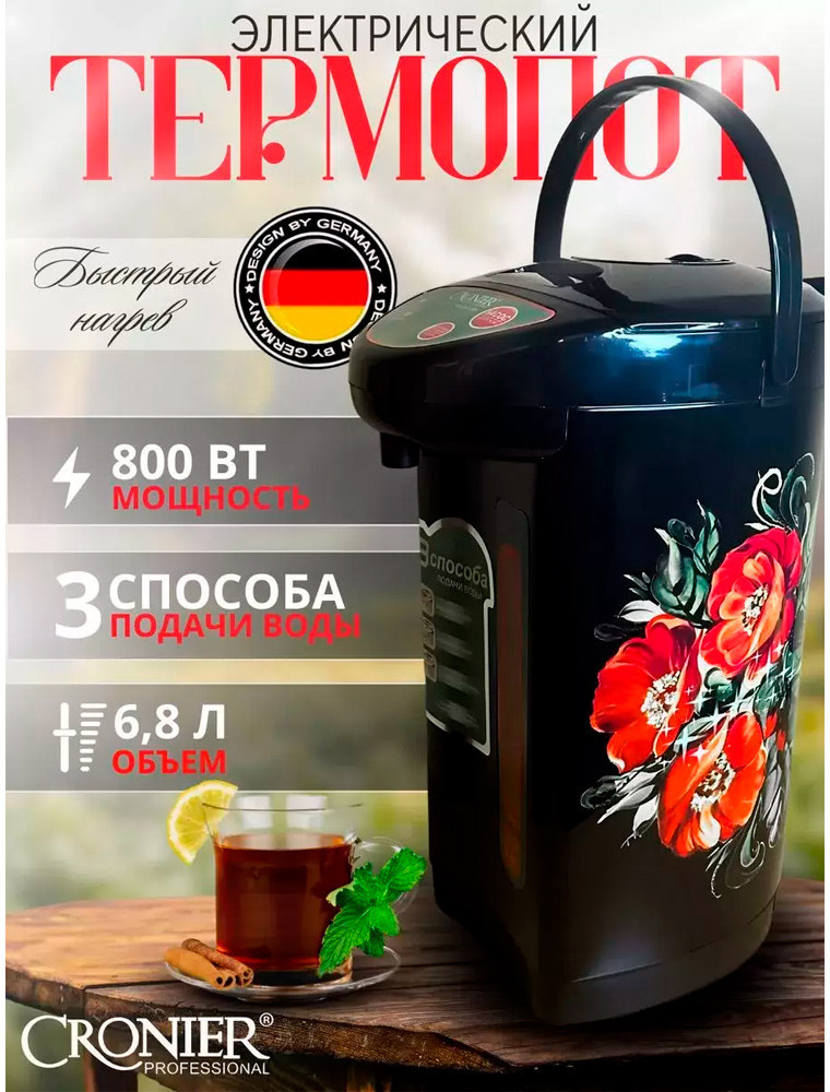 💳 Оплатить за товар можно при получении 🇰🇿 Есть бесплатная доставка по Казахстану 🎁 Копите бонусы с каждой покупки Теперь вскипятить воду и насладиться семейным чаепитием стало гораздо проще, ведь термопот Cronier CR-1599 с легкостью обеспечит всех необходимым кипятком. Этот универсальный прибор не только нагревает воду до нужной температуры, но и сохраняет ее на протяжении длительного времени. Термопот идеально подходит для больших семей, пожилых людей и молодых родителей, которым регулярно требуется кипяченая вода. Его мощность в 800 Вт позволяет быстро нагреть воду до необходимой температуры, а объем в 6,8 литров позволяет приготовить напитки для всех. |