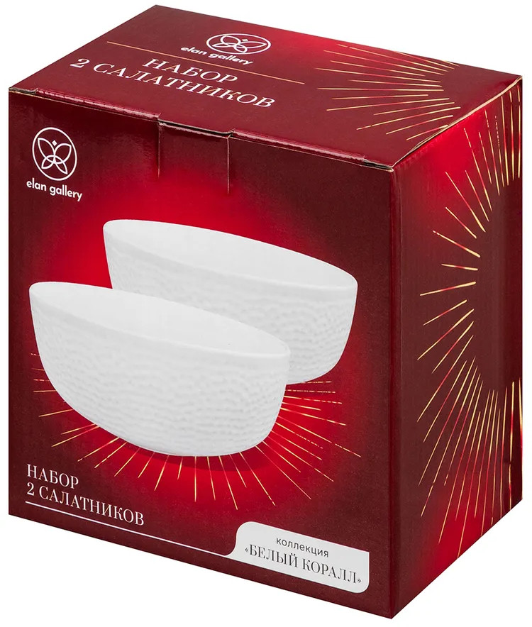 Набор 2 салатников Elan Gallery «Белый коралл» выполнен из фарфора. Размер каждого глубокого блюда — 16×16×7 см, объём — 850 мл. Коллекция «Белый коралл» украшена рельефом, вдохновлённым природной текстурой морских кораллов. С ней вы словно переноситесь на солнечное побережье, где можно насладиться свежим морским воздухом, тёплым песком и ощущением лёгкости. Используйте каждую тарелку для любых закусок и угощения гостей на празднике или вечеринке. Подойдет не только для салатов, но и сервировки любых сладостей, например, конфет или печенья. Положите в фарфоровую ёмкость кабачковую икру или свежие овощи, чтобы порадовать гостей. Благодаря глубокой форме салатницу можно использовать вместо обеденных тарелок для супа или каши. Кухонный инвентарь станет универсальным помощником при сервировке стола. Беречь от резких перепадов температур и механических повреждений.