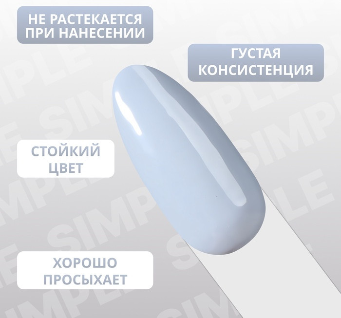 Привлекательная палитра оттенков трехфазных гель-лаков серии «Simple». Палитра серии объединила в себе спокойные и яркие цвета, которые можно дополнять декором и делать маникюр ещё более привлекательным. Такое покрытие придаст образу изюминку и не оставит Вас незамеченной. С этой палитрой гель-лаков Вы можете сочетать цвета из серии «Nude Color Glow», чтобы добавить акцент в дизайн маникюра. Для более оригинального и яркого дизайна Вы можете воспользоваться оттенками лаков из серии «Color Chrome». Гель-лак, в отличии от обычного лака, имеет большое количество преимуществ — он прост в использовании, дольше держится и поддерживает ногти в ухоженном состоянии, а также быстрее высыхает, благодаря сушке лампе (UV и LED-лампах).