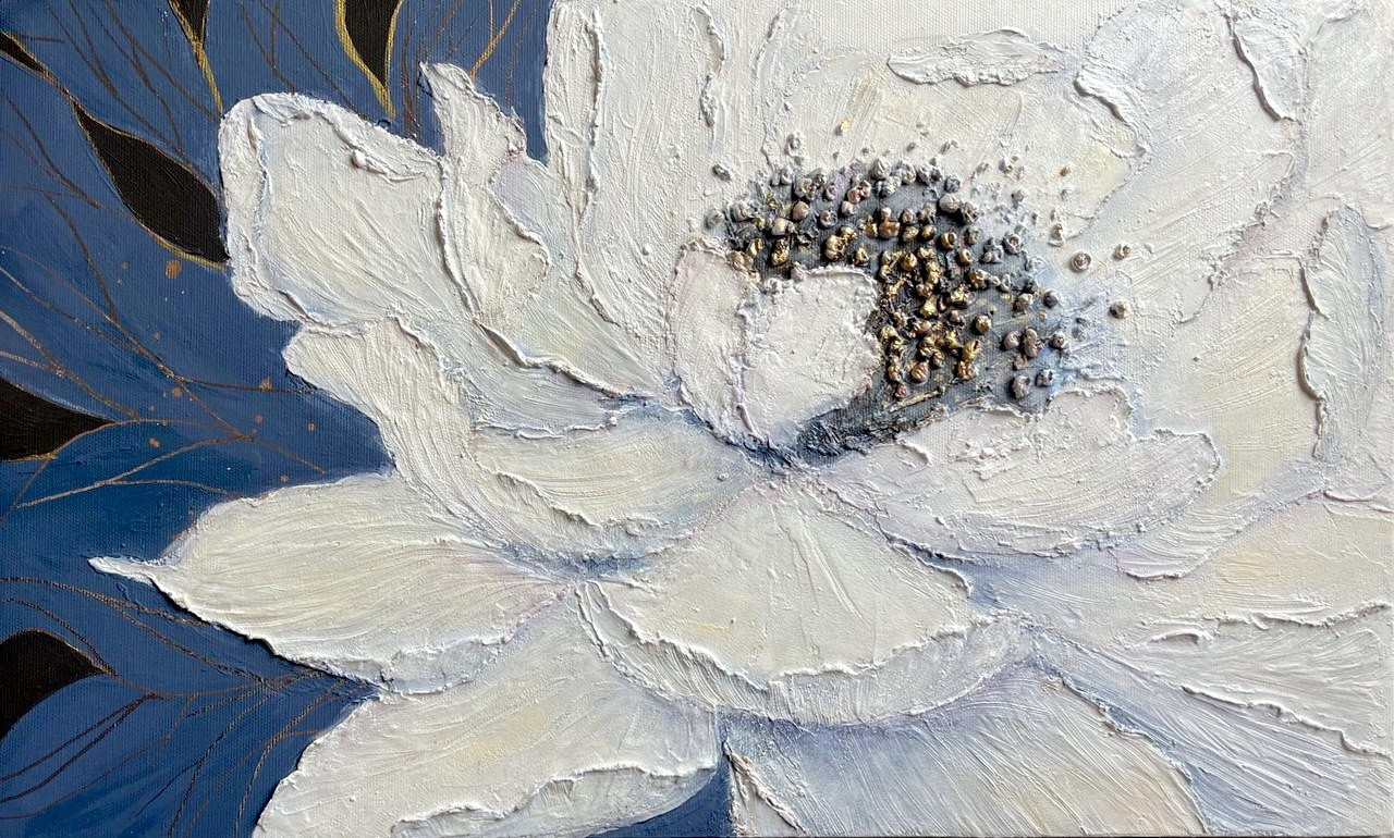 💳 Оплатить за товар можно при получении 🇰🇿 Есть бесплатная доставка по Казахстану 🎁 Копите бонусы с каждой покупки «Белый пион» — воплощение утончённой элегантности и гармонии. Объёмные лепестки, созданные фактурной техникой, словно поднимаются над холстом, передавая мягкость и воздушность распускающегося цветка. Нежная акриловые краски с лёгкими переливами контрастируют с глубоким фоном цвета индиго, который делает светлый пион ещё более выразительным. |