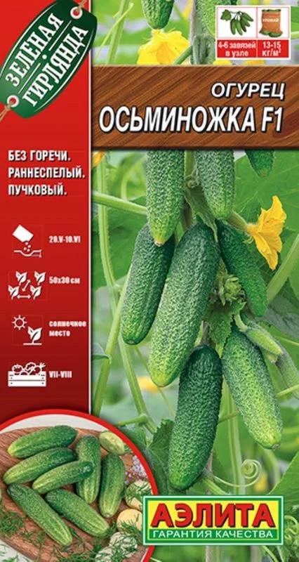 Аэлита Огурец «Осьминожка F1»В данный момент этот товар отсутствует в продаже. Возможно, у нас найдется аналогичный или похожий товар здесь. Серия: Зеленая гирлянда Партенокарпический гибрид раннего срока созревания. Первый урожай сладких и вкусных огурчиков можно собирать через 40-45 дней. Для открытого грунта и пленочных укрытий. Растения сильнорослые. Женского типа цветения. В каждом узле формируется 4-6 завязей. Зеленцы длиной 10-12 см, мелкобугорчатые, не горчат. Использование универсальное. Гибрид устойчив к болезням. Урожайность в теплице 13-15 кг/м2. Можно вырастить 20-25-дневную рассаду. Плотность посадки в теплице 2-3 растения на 1 м 2 . Гибрид требует регулярных подкормок. Налив завязей в пучке последовательный, поэтому собирать плоды нужно ежедневно, чтобы питание беспрепятственно поступало к формирующимся плодам. |