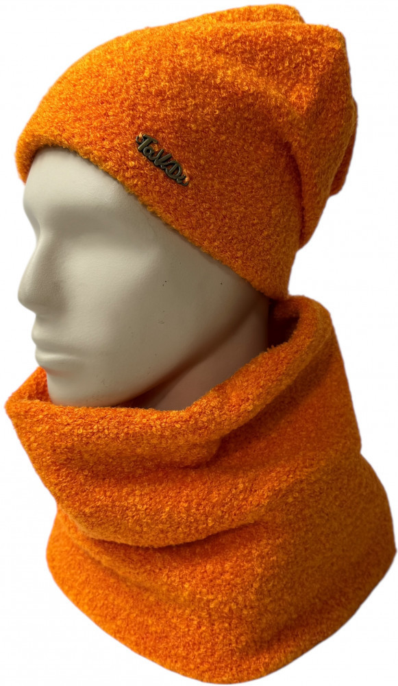 Комплект TaViDi (шапка + хомут) создан для тех, кто хочет тепла без утяжеления и стиля без лишних усилий. Мягкий оранжевый оттенок делает образ ярче, а глубокий, эластичный трикотаж приятно облегает, сохраняя комфорт даже в прохладные дни. Размер 57–60 подстраивается под посадку головы и не давит.